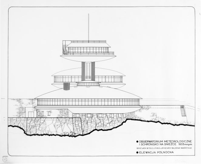 V polovině minulého století bylo rozhodnuto o výstavbě nové observatoře. První návrh v duchu tradiční horské architektury navrhli architekti z varšavského projektového ústavu. Po politických změnách na konci padesátých lete začal státní investor Okresní podnik turistických služeb z Jelení Hory uvažovat o modernějším vzhledu budovy. Nový projekt observatoře zadal architektu Lipińskému z Vratislavi.