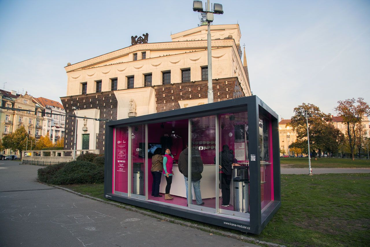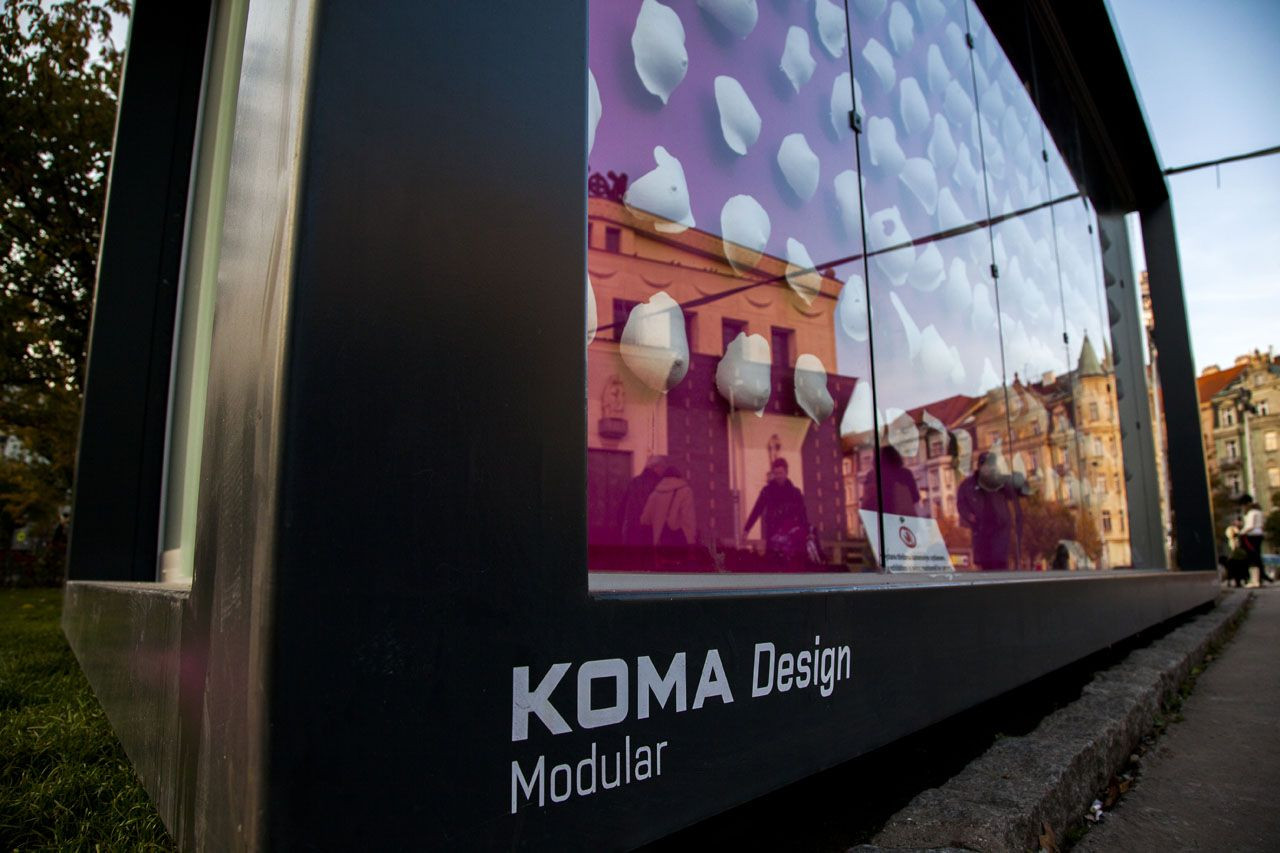 Drobná modulární architektura v podobě CITY modulů se v posledním roce objevila na mnoha místech České republiky. KOMA, která atypické CITY moduly vyvinula, své kontejnery propůjčuje celé řadě institucí a organizací, jež si rámy kontejnerů mohou upravit podle svého. „Stěnu plnou ženských ňader jsem chtěl vystavit někde venku. A protože se mi nepodařilo instalovat prsa na Pražský orloj, využili jsme k tomu stěnu v CITY modulu, u kterého se mi líbí jeho unikátnost, jeho čistota“ vysvětluje původní záměr autor projektu, designér Matyáš Fuchs. CITY moduly objevil na loňském Designbloku a do spolupráce s firmou KOMA se chtěl pustit i proto, že spoluvytvářel pro modulární pavilon výstavy EXPO 2015 v Miláně interiérová světla.