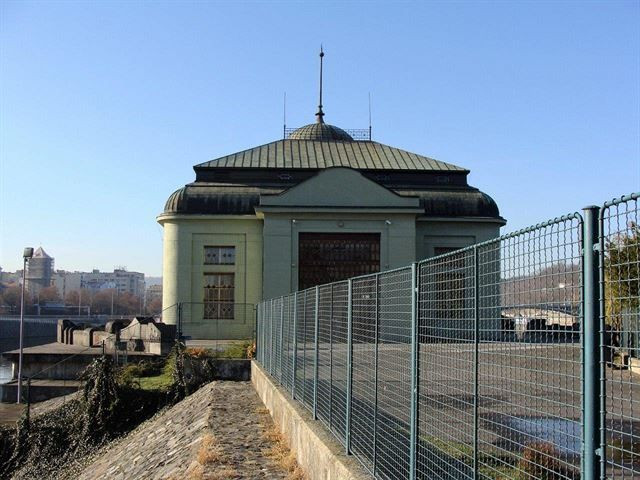 Pokračovali jsme kolem klasicistní vily, v níž je dnes divadlo, až na západní konec, který okupuje dodnes funkční hydroelektrárna architekta Aloise Dlabače z roku 1908. Jedna z původních Francisových turbín zdobí břeh. Původně tu měla stát budova, která svým tvarem připomínala kolesový parník, od Františka Sandera, hlavního architekta secesních úprav na Labi a Vltavě (byl rovněž autorem budov holešovického přístavu, některých nábřeží, ukončení Slovanského nebo Dětského ostrova se sochou Vltavy, dále jezu v Hoříně, hydroelektrárny a mostu v Hradci Králové, železničního mostu v Roudnici a řady dalších krásných vodních děl).
