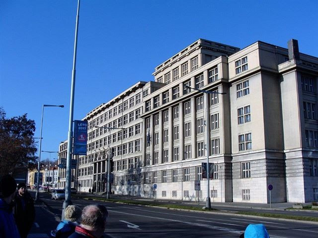 Směrem k řece se pak nachází budova, kde dnes sídlí Evropská kosmická agentura. Navrhl ji Milan Rejchl a kolektiv původně jako dostavbu Plánovací komise. Ta – původně ovšem Úrazová pojišťovna dělnická – byla na nábřeží Vltavy postavena v polovině 20. let dle návrhu Jaroslava Rösslera, když se vítězný soutěžní návrh Oldřicha Lisky zdál konzervativnímu zadavateli příliš moderní. Stavbu ve stylu moderního klasicismu s vnitřní výzdobou ve stylu art deco zdobí plastiky Karla Pokorného.