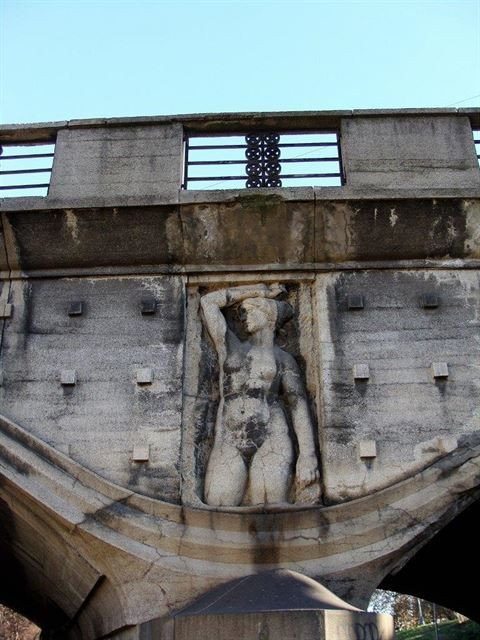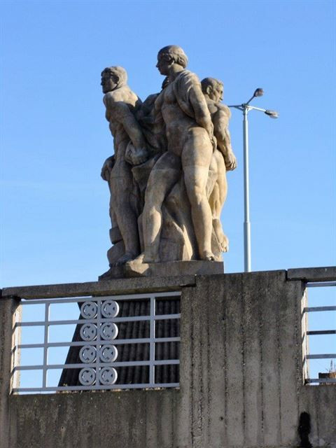 Nakonec jsme se nějak vymotali na Hlávkův most. Toto dílo Pala Janáka z let 1908-1910 bylo prvním celobetonovým mostem přes Vltavu, resp. její část, neboť vede jen na Štvanici, dál pokračoval původně železný most, později nahrazený betonovým. Hlávkův most, jehož konstrukční řešení navrhl Ing. František Mencl, je pěknou ukázkou moderny. Zdobí ho plastiky slavných sochařů: Otto Gutfreunda, Josefa Mařatky, Ladislava Kofránka a Jana Štursy, jenž navrhl sousoší Práce a Solidarita na bubenském předmostí. Most byl v 60. letech rozšířen, ale dnes je v bídném stavu, opravu potřebuje jako sůl.