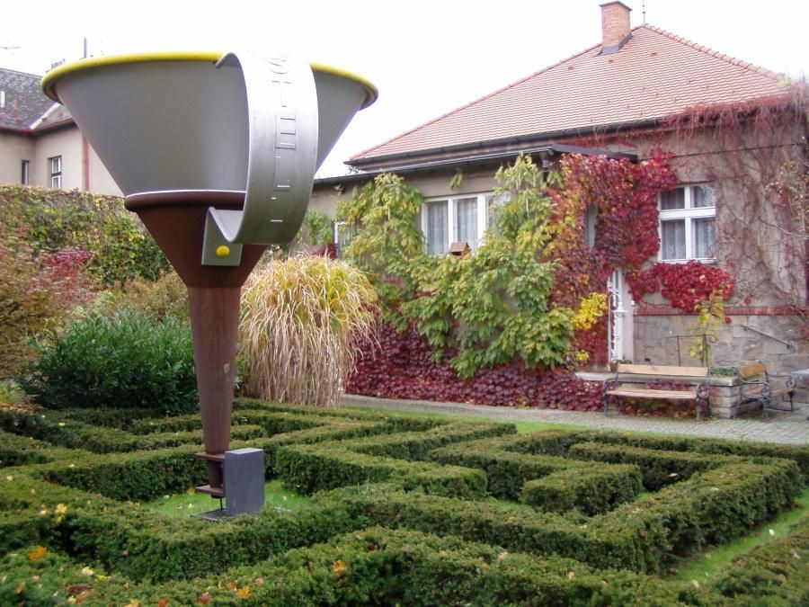 Zahrada, která vznikla na základě fabulace o souboji dvou slohů. Pravidelného, francouzského slohu, jehož základem je labyrint, jehož středem je pomyslný „střed Evropy“, tak jak je dnes moderní ve všech městech nacházet. Jako protiváha je část, která reprezentuje sloh krajinářský, anglický. Tyto dva styly měly mezi sebou bojovat a jedem z nich měl zvítězit. Díky pečlivosti a příkladné údržbě majitele se tak nestalo.
