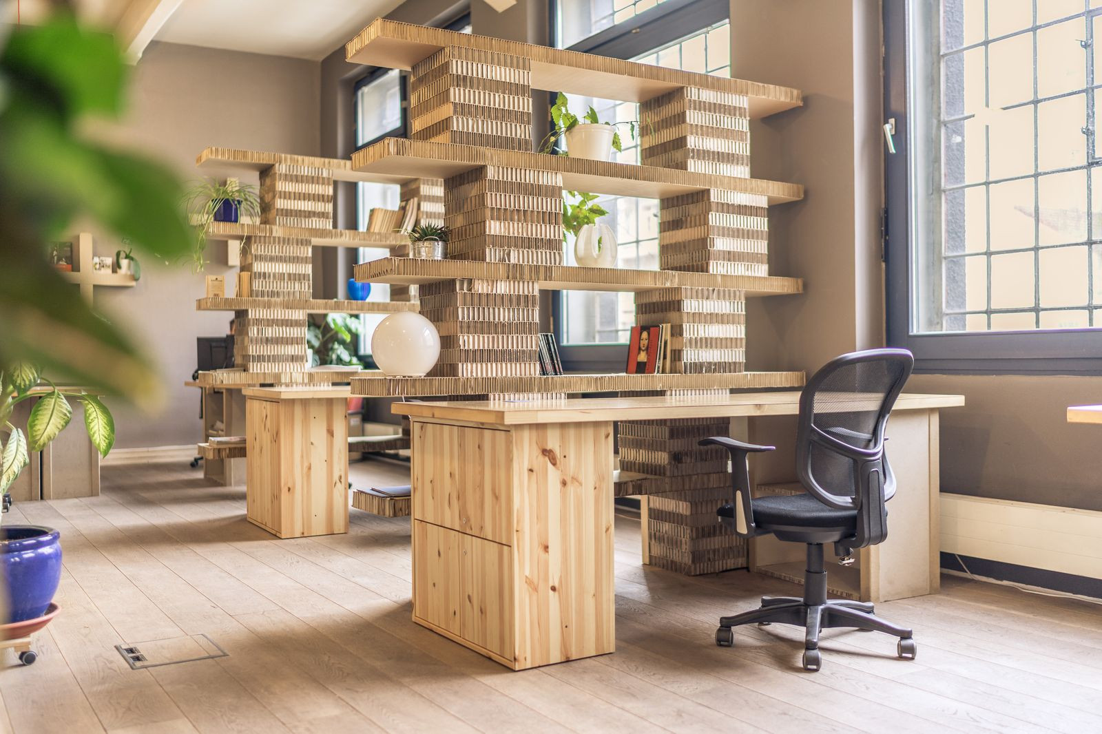 Dobrým příkladem je coworkingové centrum Paper Hub. Papírem jsme vytvořili základní interiérový koncept, pak si ten prostor na sebe vydělal, a tak jsme postupně začali papír nahrazovat dřevem. Zamykací skříňky z papíru prostě nevyrobíte.