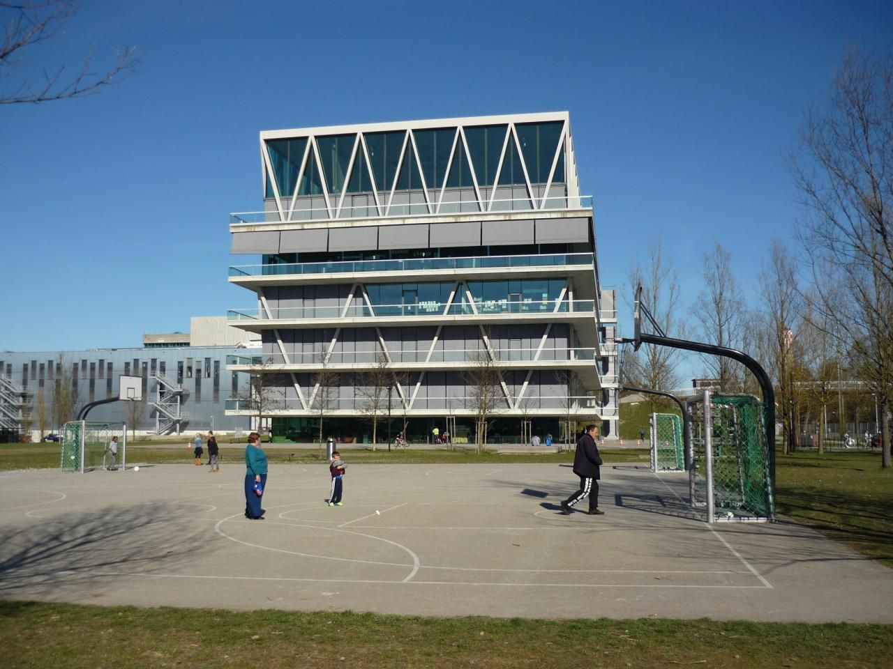 Zajímavý přístup k navrhování školní budovy zaujal Christian Kerez, svou realizací školy Leutschenbach. Na šest ocelových pilířů postavil příhradoviny o výšce celých podlaží a vzájemně je zavětroval, jak můžeme vidět na fasádě. Po obvodě každého patra je z důvodů úniku kontinuální balkón. Velmi překvapivé jsou interiéry s příčkami z profilovaných skel copilit. Třešničkou na dortu je tělocvična na střeše budovy s celoprosklenými stěnami.