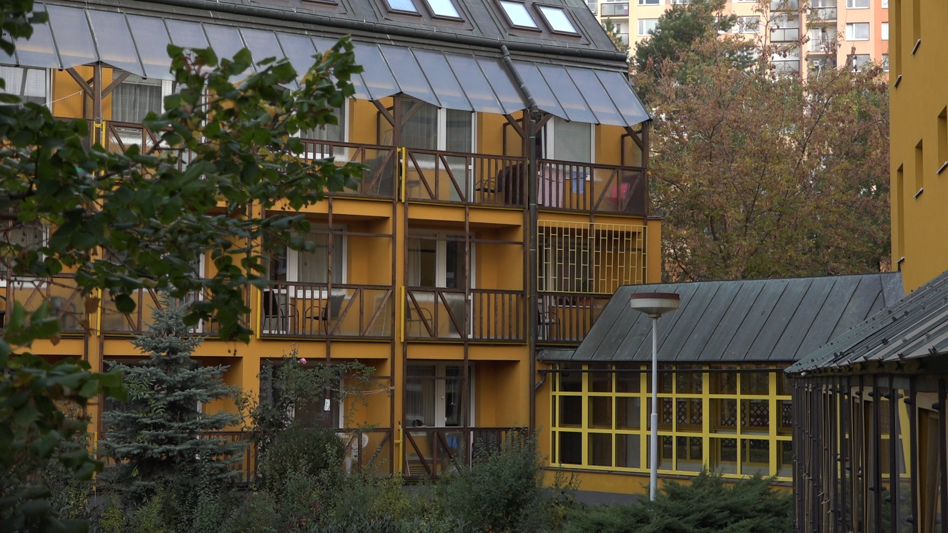 „Domov důchodců tehdy bylo ošklivé slovo, proto jsme tomu začali říkat geriatrický komplex," vzpomíná Jan Línek na dobu, kdy s Vladem Milunićem pracovali na svém vůbec prvním samostatném projektu. Jejich cílem bylo vnést do budovy individualitu, která do té doby v podobných zařízeních chyběla. V areálu se proto objevila i výtvarná díla jako tento obraz od Josefa Mžyka nebo sochařský Zvěrokruh od Karla Nepraše.
