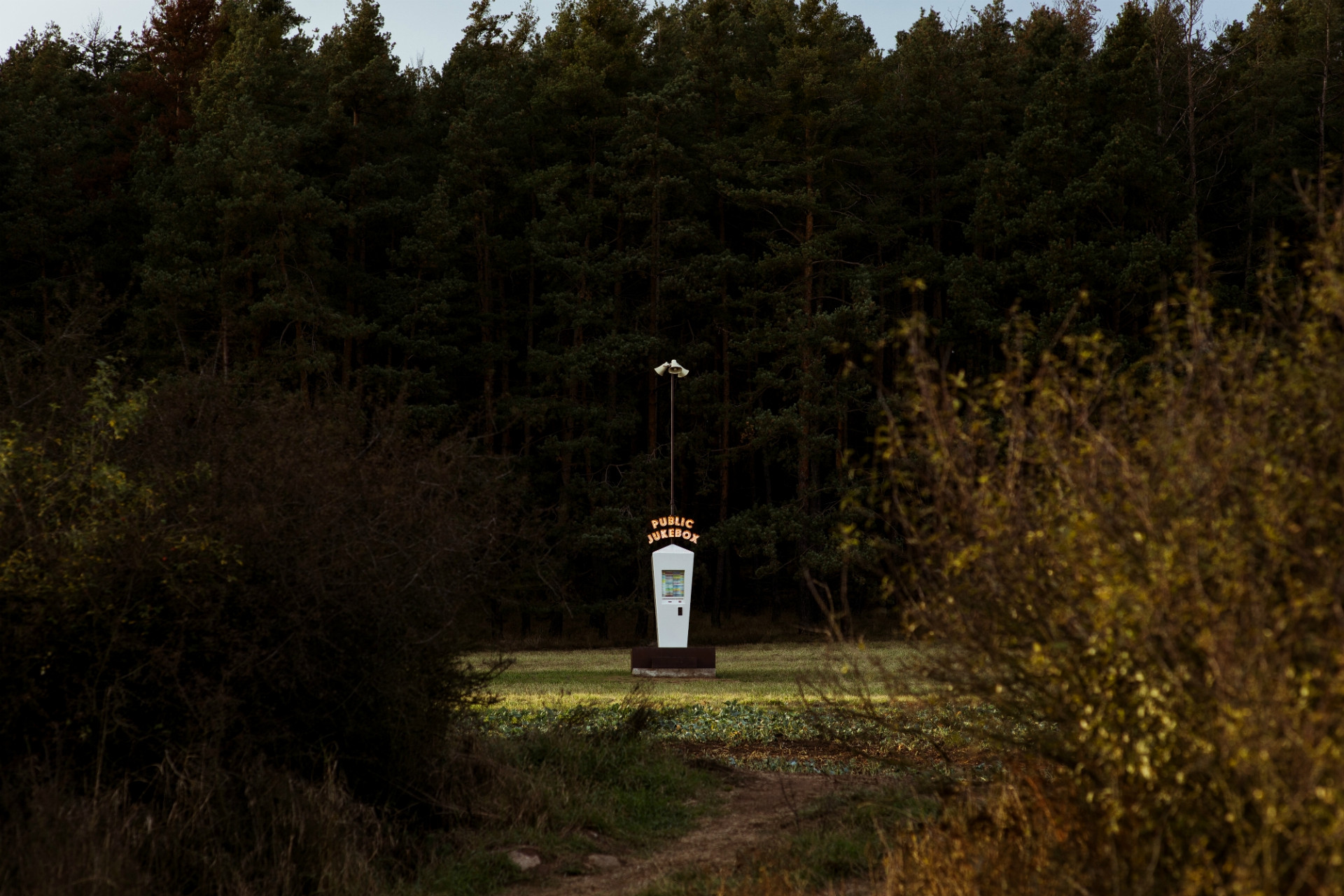 Z umístění skulptury na Islandu nakonec sešlo, své stálé místo však přeci jen našla. O pár tisíc kilometrů dále, na louce u lesa v sedlčanské krajině nedaleko středočeské vesničky Hrachov. „Najít pro Jukebox stálé místo v přírodě nám přišlo od počátku jeho vzniku jako nejlepší nápad. Public Jukebox už svojí podstatou jakéhosi koncentrátu kultury ostře kontrastuje s odlišnou povahou krajiny a přírody. Stoje na louce u lesa působí šaramantně nepatřičným dojmem. Umí být hlučný i naštvaný, stejně tak melancholický až mystický, dokáže přivolat déšť a bouřku,“ přibližuje Kintera.
