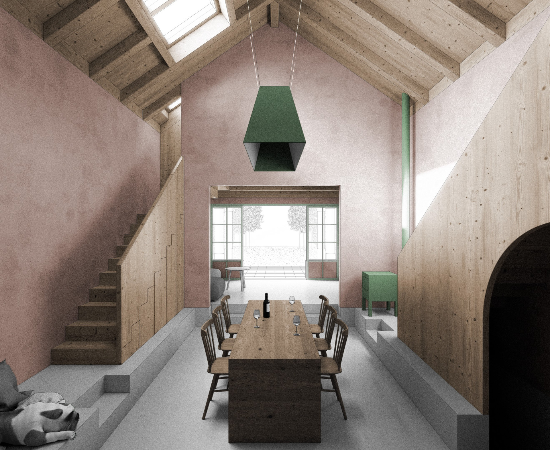 Štěpán: Napadá mě k tomu taková asociace. Třeba když jsme s Adamem navrhovali malý vinný sklep na Moravu, tak jsme udělali místo jednoho schodiště dvě. Když se nad tím zamyslíš racionálně, tak to nedává smysl, ale v konceptu domu to smysl dávalo. Ne že bychom těm lidem chtěli dělat naschvály, ale ten nápad nás bavil a dával smysl prostorově. Baráky, jak říkala Alena Šrámková, nejsou zas tak vážné. Baráky můžou být i sranda, musí tě bavit, že jo?! A tak jsme udělali okap, co končí tři metry nad zemí, protože nám to přišlo fajn a kompozičně důležité, ale zatím je projekt pouze ve studii.