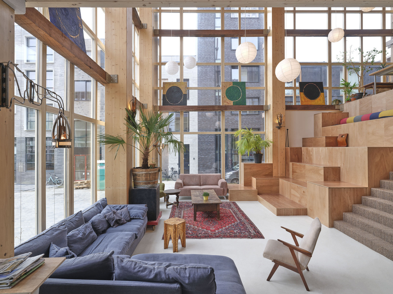 Stejně jako my, i Holanďani si stěžují na nedostatečnou podporou družstevního bydlení. Na bienále však stejně byli schopni odprezentovat tři nedávné družstevní počiny – bytové soubory De Warren (1923), Het Nieuwe Bajesdorp (2024) a De Nieuwe Meent (v procesu výstavby). V souboru De Warren, který poskytuje bydlení šestatřiceti rodinám, je skoro třetina objemu budovy věnována sdíleným komunitním prostorám. Projekt iniciovaný skupinou přátel se stal v Holandsku prvním svého druhu, o jeho vzniku vypráví dokument Living Together: The Story of De Warren (2023).