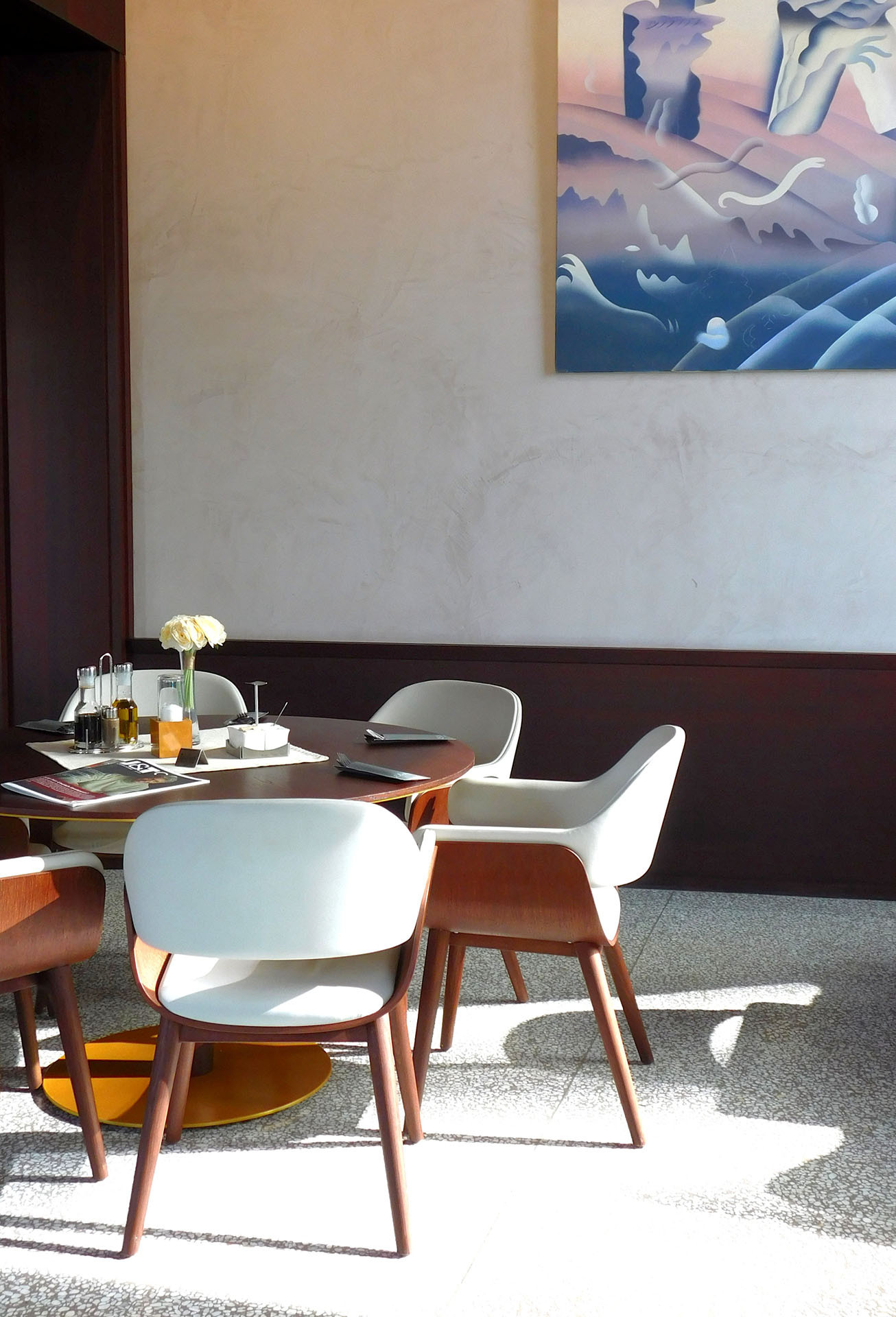 Zářící kruhy ve výloze na místě, kde vládne sorela. Takhle pekařské bistro upozorňuje na vystavené pečivo i výjimečnost své provozovny. Díky původnímu betonovému stropu a exponované vzduchotechnice má interiér industriální ráz. Do středu je umístěn závěsný regál s nabídkou a do popředí pult s vitrínami. V zákulisí této scény se nachází zázemí obsluhy, v zadní části bistra je navíc vložená dřevem obložená kostka se skladem. Zbytek prostoru zaplňují asymetrické stolky a podél zdí ubíhající lavice.