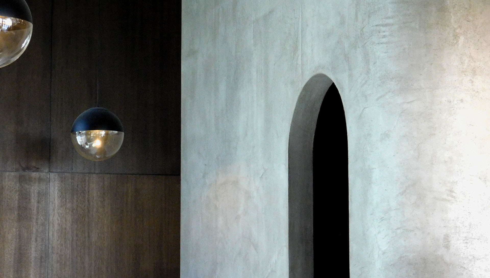 V interiéru najdete nápaditou symboliku – špinavě bílé zdi mají barvu mouky, použitá stěrka je vyprofilovaná jako těsto na chleba vykynuté v ošatce. Na finální stádium pečení odkazuje dřevěný nábytek a obložení skladu v barvě chlebové kůrky. Trubicová svítidla ve tvaru písmene L vychází z loga bistra, stejně tak i velká zářící obruč nad pulty.