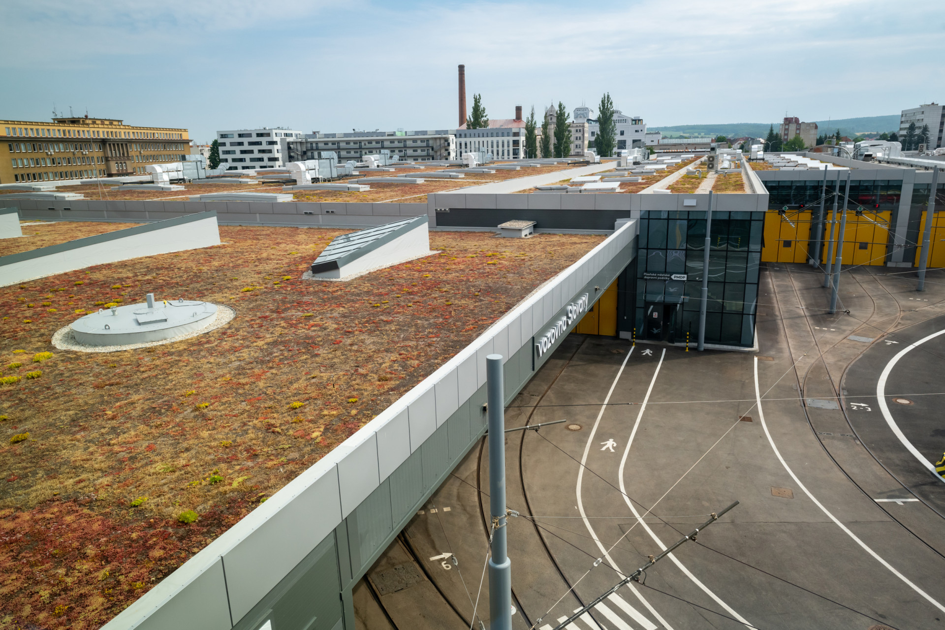 - Pracovní prostředí – Modernizace vozovny Slovany Moderní ekologickou základnu tramvajové dopravy se za provozu podařilo vybudovat v Plzni. Areál má sníženou hlukovou zátěž i množství spotřebované energie, pracuje se zelenými střechami i dešťovou vodou. Tou se přímo umývají tramvaje.