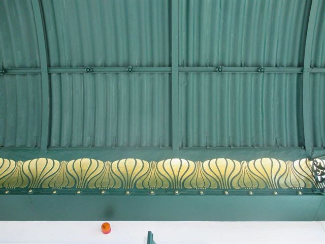 Střízlivé jsou i Wagnerovy stanice linek podzemní (a z části i nadzemní) městské dráhy. Výjimkou jsou ty, které stojí na prominentních místech. Tak zastávka Karlovo náměstí (Karlsplatz) z let 1898-1899 má dva vstupní kiosky s železnou konstrukcí, vyrobenou v Blansku, obloženy mramorovými deskami se zlacenými ornamenty. A pak ona císařská zastávka Hofpavillon u Schönbrunnu, zakončená kupolí a bohatě dekorovaná, takže trochu připomíná dort. Ta byla postavena v letech 1894-1898 jako jedna z prvních na trase z centra podél regulované říčky Wien. Chcete-li si ji prohlédnout, musíte vystoupit na stanici Hietzing a pak se pár desítek metrů vrátit zpět. Průčelí s eliptickými okny v horní části doplňuje skleněná markýza nad vstupem. Uvnitř je v půdorysu kruhová místnost s dřevěným obkladem stěn a stropu, jíž dominuje velký obraz - pohled na město z ptačí perspektivy. V přilehlé místnosti je pak museumshop s knížkami, plakáty a suvenýry, samozřejmě na téma vídeňská secese. Zajímavý pohled se vám naskytne i z perónu sousední stanice, kde je vidět, že celý pavilon stojí na můstku, překlenujícímu trať. Wagner samozřejmě vymyslel nejen vlastní zastávky, ale i speciální písmo a vše to, co dnes nazýváme korporátním designem.