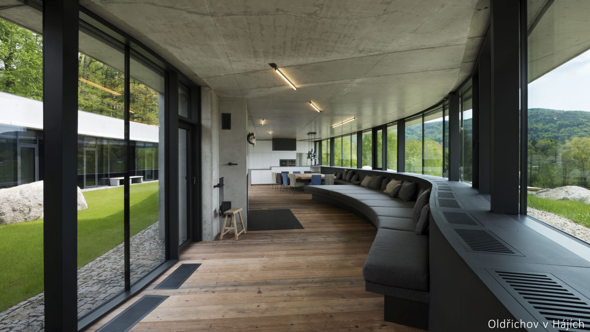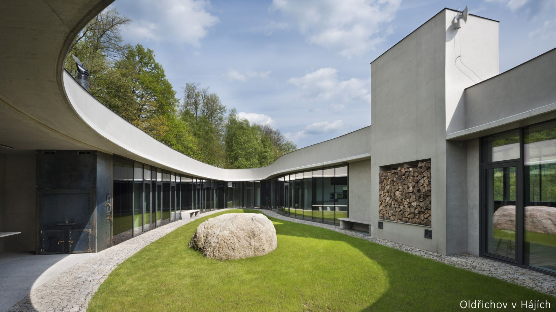 Synergie: Rodinný dům ve vesničce Oldřichov v Hájích. Citlivé zasazení do malebné krajiny Jizerských hor, navázání na vrstevnice svahu a využití místního materiálu, liberecké žuly, vytvářejí unikátní dílo, za které Pantelis Larcou v roce 2016 získává ocenění Grand Prix Architektů za rodinný dům.