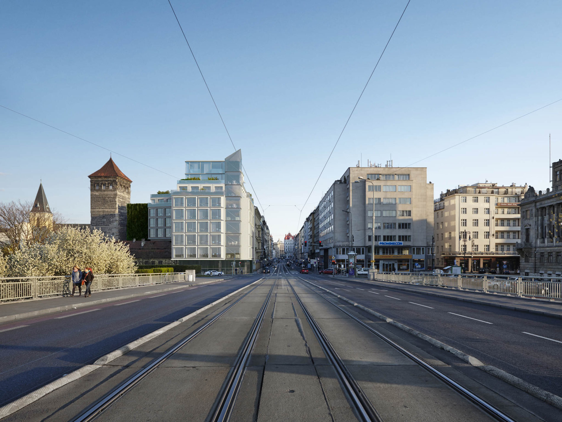 Nová stavba bude stát u Vltavy na konci Revoluční ulice na místě zbouraného novorenesančního domu. Po mnoha neúspěšných pokusech zde stavět vypsal investor mezinárodní architektonickou soutěž, do níž se přihlásilo 84 soutěžících. Šest týmů bylo vyzváno ke zpracování návrhu. Zvítězily architektonické kanceláře PEER a Studio Muoto.