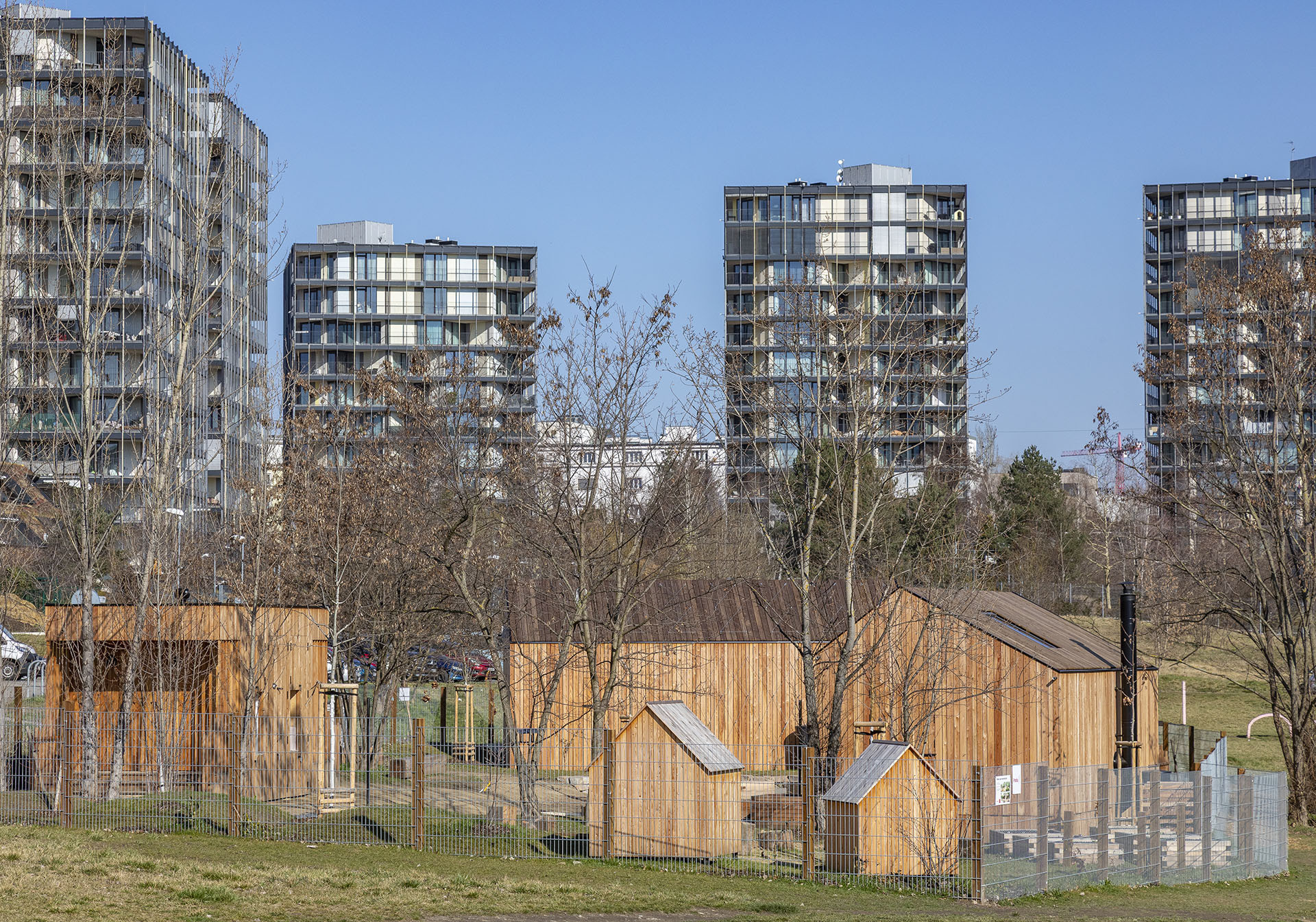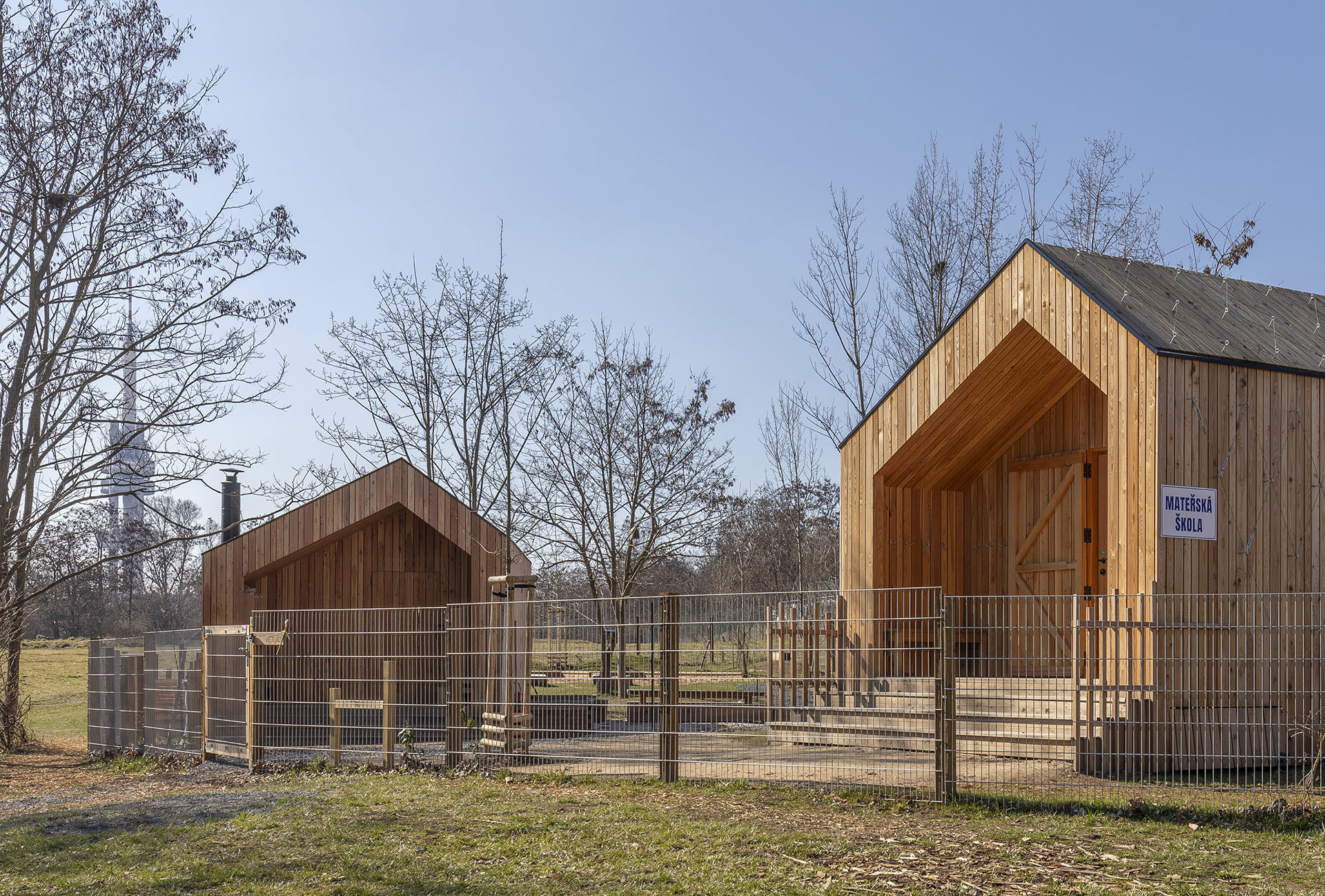 Mateřských škol je v Praze vůbec nejvíc – podle IPR jich v roce 2024 fungovalo 448, z toho 70 % zřizují městské části. A právě Praha 3 patří k těm, které s jejich podobou nejvíc experimentují. Na začátku školního roku 2024/2025 otevřela lesní třídu Větvíci, ovšem nikoliv u lesa, ale mezi bytovkami u Olšanské ulice. Areál navrhla architektka Jana Šaňáková s krajinářským ateliérem Terra Florida. Městská část tím testuje model lesních školek přímo v husté městské zástavbě.