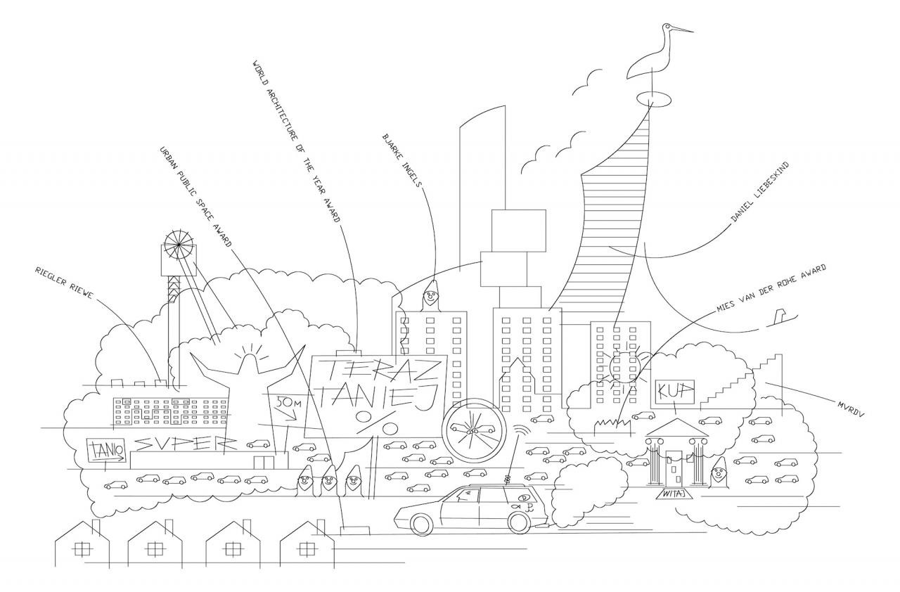Jednoznačná kritika a nazývání věcí pravými jmény obvykle nebývají známkou společenské elegance. Elegance, za jejíž demonstraci může být považováno například hlavní sídlo Asociace polských architektů (SARP) na ulici Foksal ve Varšavě, však není doménou našeho oboru. Pokud ovšem nejde o udělování cen – ale o tom později. Den co den probíhá boj, v němž často stojíme na straně těch, kteří ničí vzácnou práci svých vynikajících předchůdců (např. supermodernistický Supersam ze šedesátých let ve Varšavě, který byl nahrazen administrativní budovou), strkají lidi do „nanoloftů“, zapomínají na stromy kolem bytových domů a v dobách klimatické krize projektují obří zpevněné plochy. Jsme elegantní, do černé odění zástupci politiků a podnikatelů, kterými tiše pohrdáme minimálně tak jako oni námi. Jsme sebe hodni. Jsme vzdělané, ze směsice krásných ideálů a inženýrské logiky vzešlé kreatury, které jdou po nových tématech jako slepice po flusu. Ale tak nějak elegantněji, s neustálou otázkou v hlavě, zda jsme umělci, nebo inženýři, s ústy plnými frází a skicářem Moleskine pod paží.