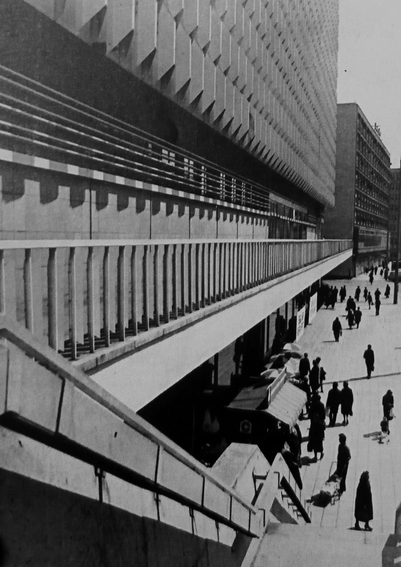 Celému náměstí měl dominovat hotel Stadt Berlín a právě obchodní dům Centrum, který se plánoval v místech, kde kdysi stával první obchodní dům Hertie Hermanna Tietze. Výstavba obchodního domu začala v roce 1967 a přes složité základové podmínky (dům totiž leží mezi dvěma tubusy linek U-Bahn) trvala tři roky. Poloha tubusů výrazně omezila i půdorysné rozměry domu, téměř čtvercový plán 78,2 x 73,2 metru byl tedy zopakován na více podlažích, než bylo v té době u obchodních domů zvykem. Celkem jich je osm, včetně dvou podlaží suterénních.