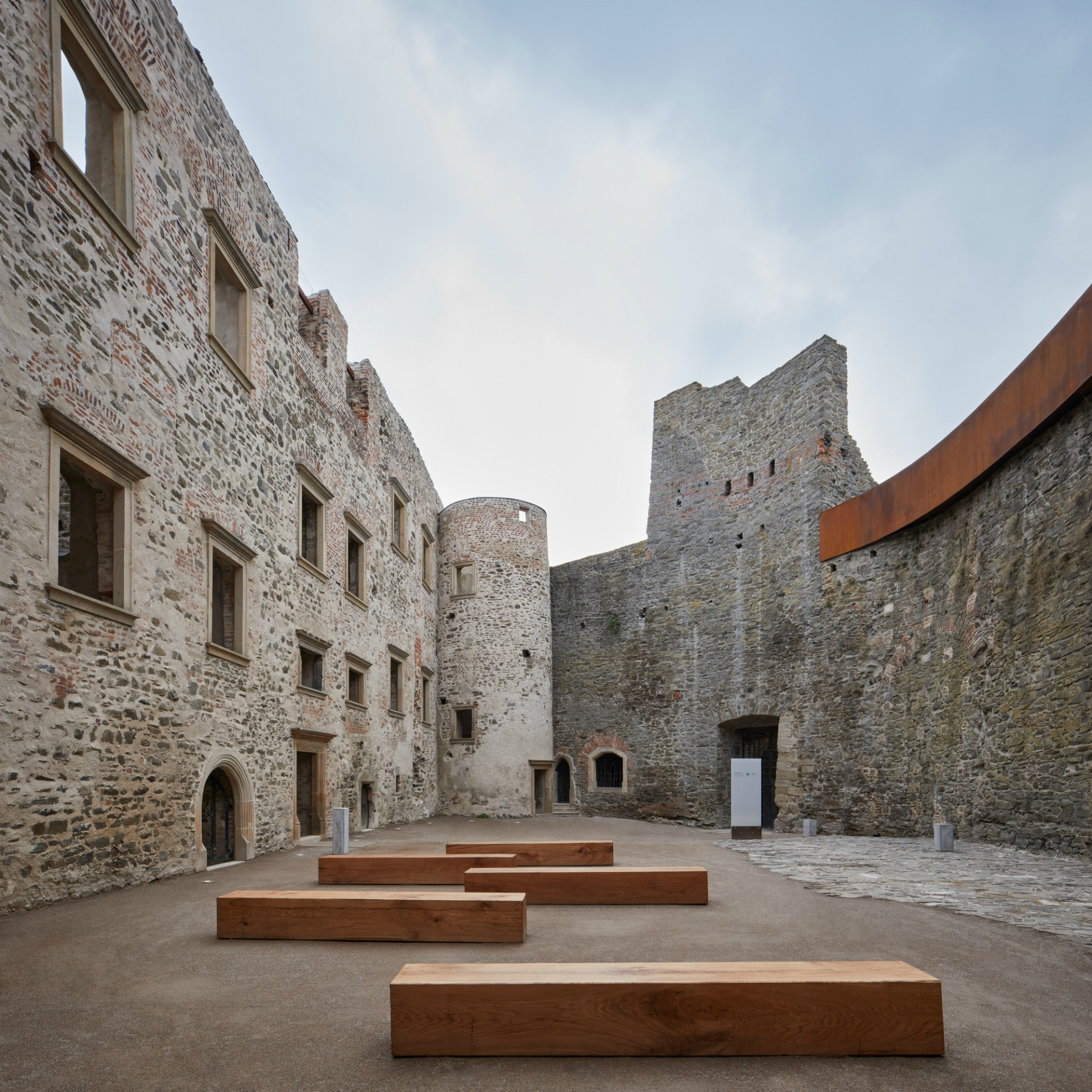 S respektem k dochovanému torzu renesančního paláce se středověkým základem hledali architekti způsob jeho optimálního zastřešení a zpřístupnění návštěvníkům. Do historické stavby, ze které byly zachovány hlavně obvodové zdi, vložili novou nápadnou strukturu schodišť a lávek, které umožnily znovu propojit přízemí s nadzemními podlažími. Nově vložené prvky jsou záměrně odlišené od těch původních a srozumitelně tak komunikují, co je nové a co staré.