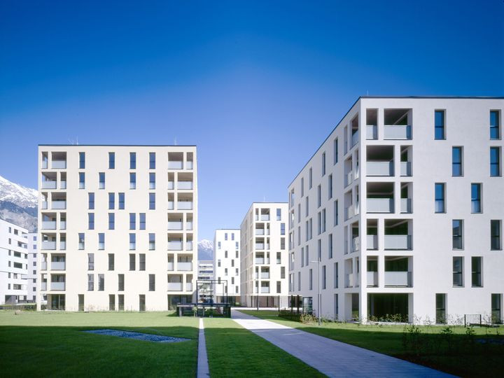 Hlavní město rakouské spolkové země Tyrolsko z přibližně 13. století je v podhůří Alp, nedaleko Brennerského průsmyku, který je nejschůdnější cestou do Itálie. Láká nejen na středověké historické jádro, ale i sportovní architekturu. Park Olympiaworld s halou z pera Hanse Buchrainera vznikl pro zimní olympijské hry v roce 1964 a světová soutěž se do něj později ještě několikrát vrátila. Naposledy v roce 2012 během zimní olympiády mládeže, kdy k němu město nechalo přistavět novou vesnici v severovýchodní části města. Z třinácti osmipodlažních domů od architektů Eck & Reiter je dnes bytový komplex a příklad toho, jakým způsobem jde využít dosloužilá olympijská architektura.