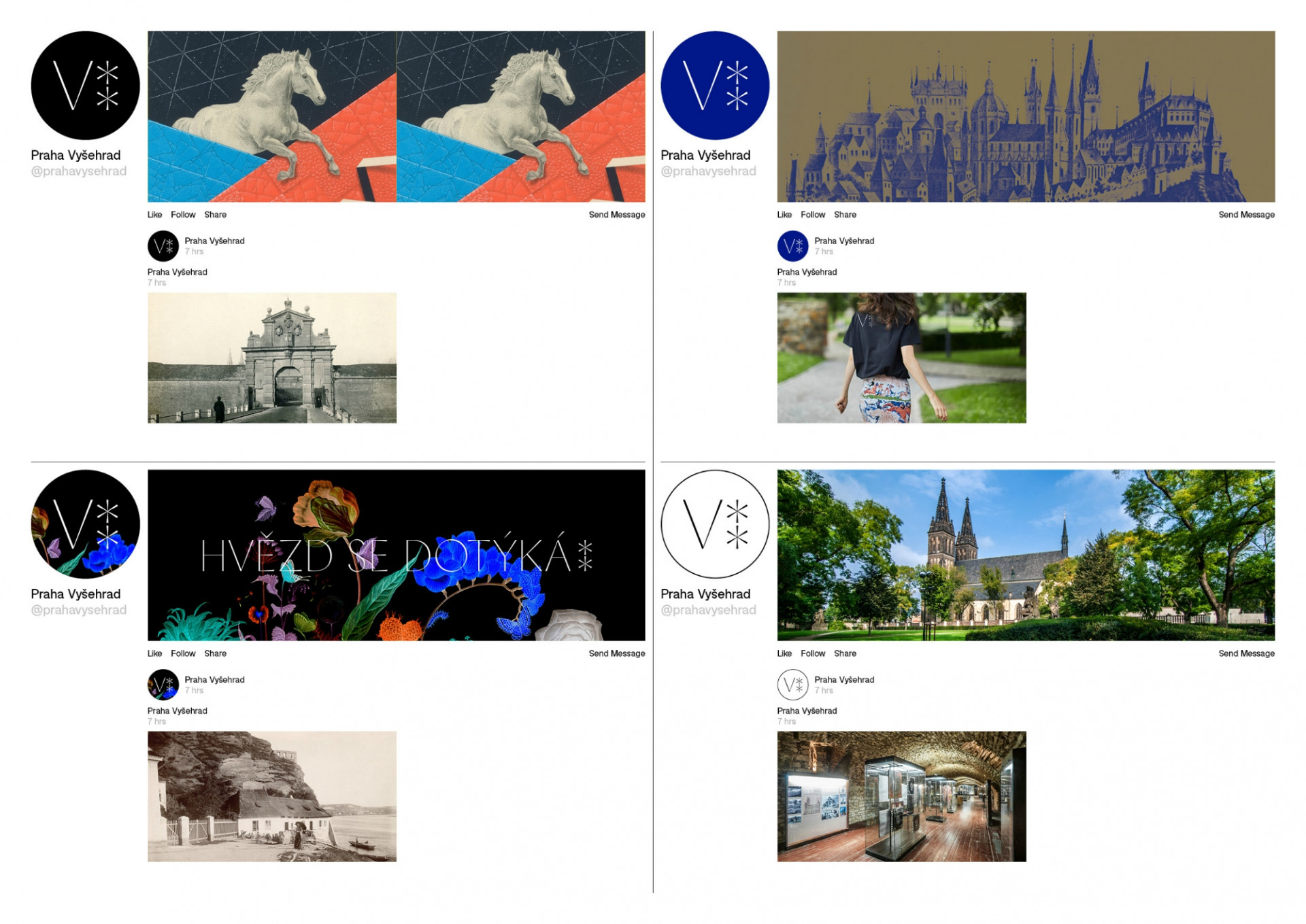 „Nalezení nové vizuální identity Vyšehradu se pro nás změnilo v dobrodružnou výpravu, znamenající hluboký ponor do tématu. Prošli jsme branami archeologie, historie, geologie a biologie, abychom se nakonec dotkli samotných hvězd. Právě zde leží klíč k nové vizualitě,“ komentují autoři nové identity.