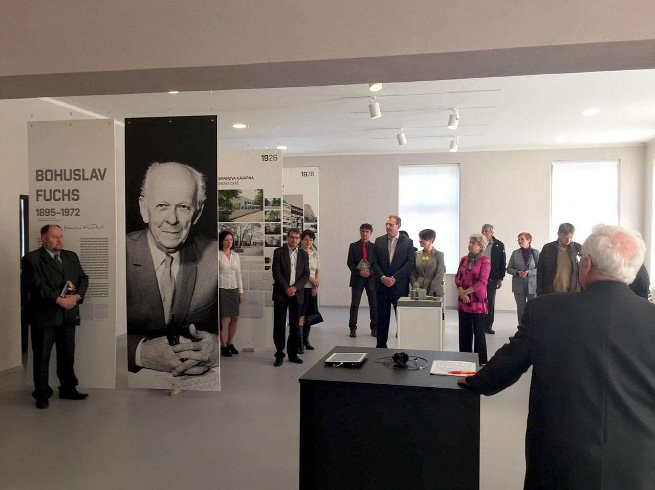 Slavnost zahájil ve Výstavní síni Bohuslava Fuchse starosta obce Všechovice Radovan Mikuš. Život a dílo Bohuslava Fuchse a expozici výstavní síně poté představil doc. ing. arch. Jiří Palacký, PhD., proděkan Fakulty architektury VUT v Brně, který se na vzniku expozice nejvíce podílel. Přítomné přivítal rovněž náměstek hejtmana Olomouckého kraje Mgr. Radovan Rašťák. Tato úvodní slavnost byla současně zahájením projektu Putování po stavbách Bohuslava Fuchse nejen v Olomouckém kraji. Projekt představil Dr. Oldřich Janota, ředitel Kotěrova centra architektury. Ten ve svém proslovu rovněž ocenil vznik Výstavní síně ve Všechovicích a daroval obci dřevoryt s autoportrétem Fuchsova učitele Jana Kotěry, zakladatele a vůdčí osobnosti české moderní architektury.
