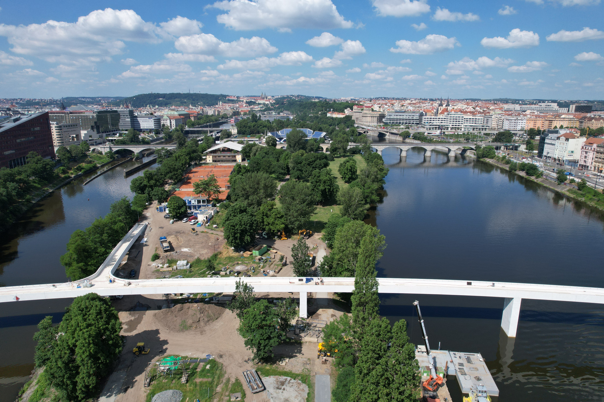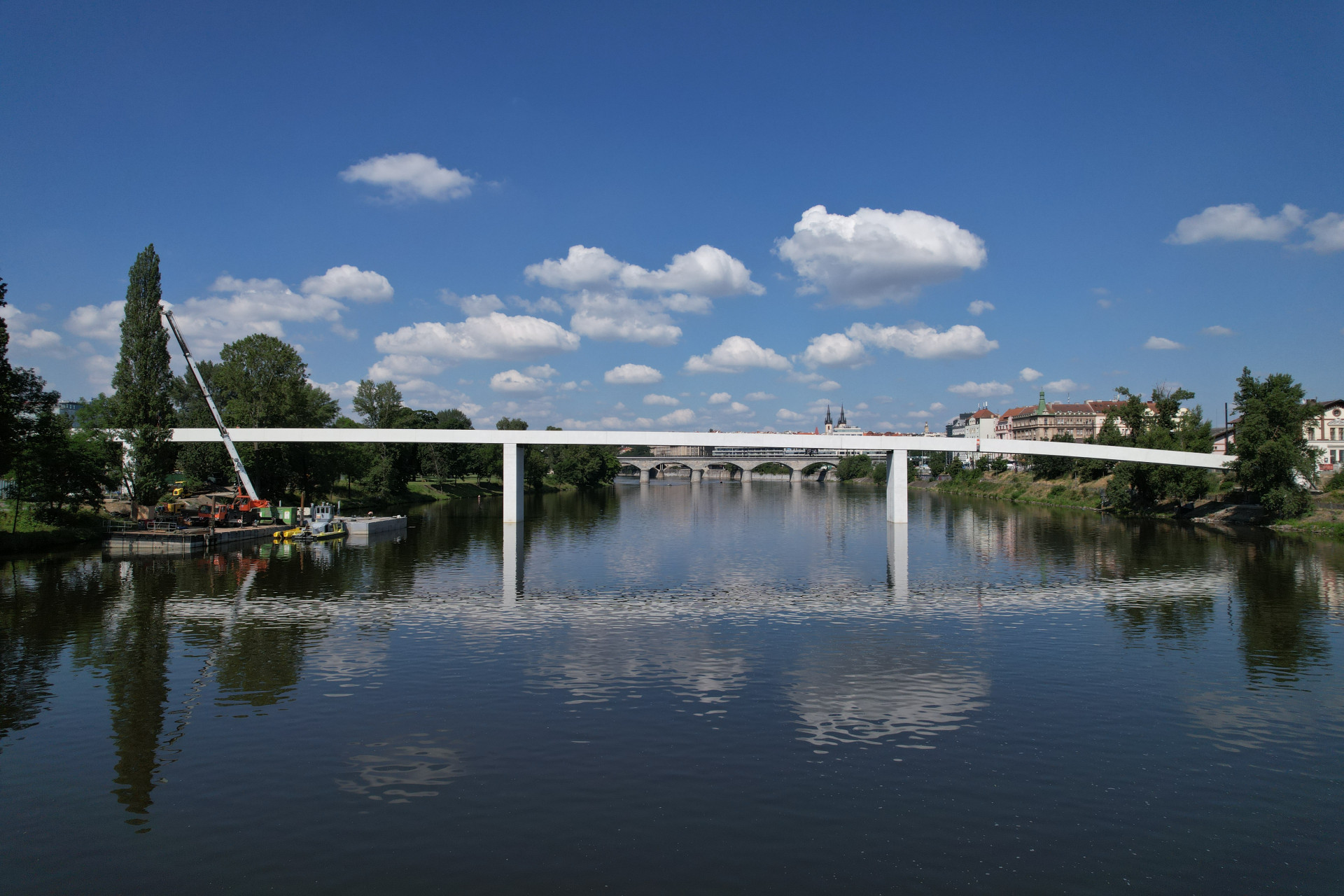 Už tento pátek 28. července se pro veřejnost otevře Štvanická lávka, která spojí pražské čtvrtě Holešovice a Karlín. Stavba podle projektu architektů Petra Teje, Marka Blanka a Jana Mourka se začala stavět loni v lednu. Nyní finišuje - v rychlém tempu probíhají dokončovací práce, těsně před otevřením se instaluje například socha od Jana Hendrycha.