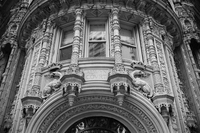 Jak knižní předloha, tak i film si získaly ve světě i u nás velký respekt. A jak to souvisí s architekturou? Jednu z hlavních rolí zde hraje extravagantní a krásně ponurý dům, kde se celý příběh odehrává. Ve skutečnosti jsou to vlastně stavby dvě – obě kultovní a nepříliš od sebe vzdálené. Jedna účinkuje v Levinově knížce, druhá pak ve filmové adaptaci. Pojďme se nejdříve blíže podívat na tu první. Ira Levin nastěhoval na počátku románu své novomanžele Woodhousovy do palácového domu, který dodnes stojí na nároží 7. avenue a Západní 58. ulice v Midtownu na Manhattanu, pouhý blok od jižního okraje Centrálního parku. V knize je dům pojmenován Bramford house, ale to je autorem vymyšlený název. Ve skutečnosti se jedná o Alwyn Court, budovu v tzv. beaux art stylu, což je směs francouzské renesance s prvky tzv. gotického revivalu, ale ovlivněném také tzv. Chicagskou školou. Bohatě zdobené průčelí s terakotovými ozdobami nese i symbol stavby – salamandra s korunkou. Jedenáctipatrová stavba, zakončená mohutnou korunní římsou, původně obsahovala obří čtrnáctipokojové byty s pěti koupelnami. Ty byly později rozděleny na menší apartmány. Dům byl vystavěn v letech 1907-1909 podle projektu firmy Harde & Short, kterou vlastnili kanadský architekt Richard Thomas Short a podnikatel v nemovitostech Herbert Harde. Oba si získali již dříve prestiž realizací budovy zvané Red House, rovněž na Manhattanu. Alwyn Court Iru Levina jistě fascinoval, navíc se v jeho ponurých sklepních prostorách dá skvěle vyvolat pocit nebezpečí, což – jak víme – sehrálo také svou roli, stejně jako údajná nevalná pověst stavby, v níž se prý udály nejrůznější mordy. Na počátku knížky padla zmínka i o domě Dakota (kde se pak točil film), ale mladí manželé to komentují, že jde o družstevní dům, a proto tam bydlet nemohou.