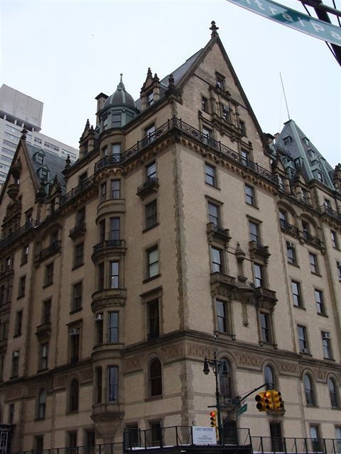 Proč se nakonec Roman Polanski rozhodl využít ve svém skvělém snímku právě Dakotu, nevíme. Možná si majitel Alwyn Courtu nepřál, aby byl jeho luxusní objekt spojován s temným dějem knížky, ale spíše asi převládly praktické důvody, neboť první stavba stojí na rušné křižovatce, zatímco průčelí té druhé lze pohodlně snímat z Centrálního parku. The Dakota Apartment totiž stojí na jeho okraji, přesněji na nároží Central Park West a 72. ulice v luxusní rezidenční čtvrti Upper West Side. Mohutnou stavbu postavil v letech 1880-1884 Henry Janeway Hardenbergh ve stylu hansovních renesančních severoněmeckých paláců. Průčelí zdobí řada terakotových prvků, nad vstupem je pak umístěna hlava indiána z kmene Dakota, na jehož někdejším území stavba vznikla. Po dokončení to byl největší objekt široko daleko. Stejný architekt pak v podobném stylu vybudoval nedaleko odtud i známý hotel Plaza. Byty ve francouzském zámeckém stylu byly luxusní a mnohapokojové, později byly většinou rozděleny na menší (v Polanského filmu se ale točily všechny interiérové scény v hollywoodských studiích). V budově bydlela (a vlastně dodnes bydlí) řada prominentních osobností, mít apartmá v Dakotě se prostě nosí. Připomínám alespoň některé z nich: herečky Lillian Gishová a Judy Garlandová, herci Boris Karloff a Jason Robards, hudební skladatel a dirigent Leonard Bernstein, zpěvačka Roberta Flacková, tanečník Rudolf Nurejev a také John a Yoko Lennonovi. John byl před vstupem do Dakoty zavražděn v roce 1980, což mimochodem připomíná i parčík Strawberry Field na okraji protějšího Central parku. O tom, kdo bude v Dakotě bydlet, ovšem rozhoduje družstvo jeho nájemníků. Některé známé osobnosti jako Melanie Griffithová s Antoniem Banderasem například neuspěly, podobně, jako zpěváci Billy Joel a Carly Simonová…