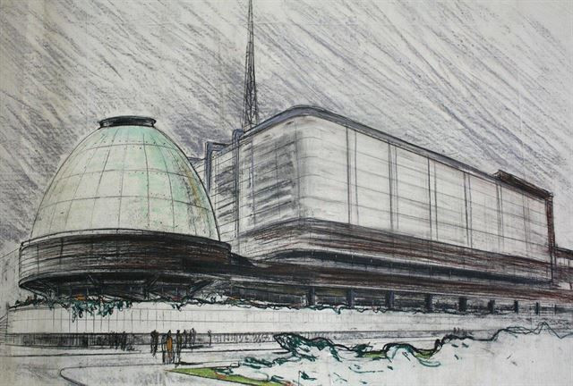 Nakonec byla dána priorita Babuškovu návrhu. Město ale požadovalo, aby dlouhatánský monoblok byl přerušen komunikací, a tak došlo ve finále k úplnému oddělení obou staveb, jež pak v definitivním projektu symbolicky spojila nad uličkou Muzejní jakási symbolická brána, tvořená kamennými pilíři, nesoucími překlad spojující obě stavby. I tento prvek ale ve finálním projektu zmizel. Trochu mi to připadá, jako by sílící spory mezi oběma institucemi vedly nakonec k totální separaci a i to symbolické gesto spojení muselo být přetrženo. Obě budovy se začaly stavět postupně v letech 1937 – 1938. A jak tedy nakonec vypadají? Hlavní – tedy jižní průčelí obou staveb jsou identická. Oba hranoly mají hnědý keramický plášť, plochou střechu a symetricky situované vstupy, akcentované štíhlými pilíři. Byla to taková kompromisní varianta mezi funkcionalismem a moderním klasicismem. Ale je tu jeden důležitý rozdíl. Technické muzeum má směrem na sever přistavěnu velkou halu s ocelovou konstrukcí, kde je dnes pověstná expozice dopravních prostředků. V padesátých letech ještě přibyly téměř půl kilometru dlouhé chodby rudného a uhelného dolu, což je další skvělá atrakce.