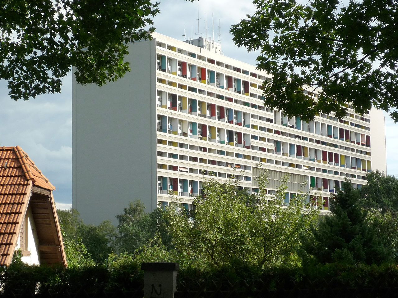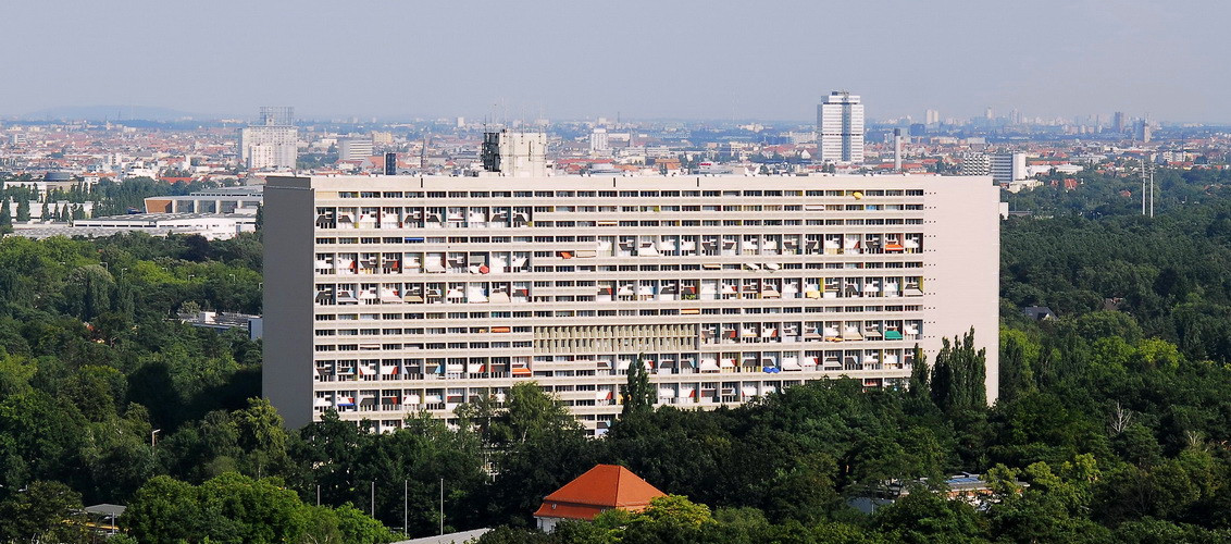 Ve stejné době, v letech 1947-1952 - byl ve francouzském přístavu Marseille postaven pod názvem Cité Radieuse i první kolektivní dům dle projektu Le Corbusiera. Kolosální stavba obsahovala 337 malých mezonetových bytů (tedy ve dvou patrech nad sebou), obchody, společné stravování, obchody a služby, včetně mateřských škol a jeslí. Na střeše byla sluneční terasa, bazén, běžecká dráha a galerie. Systém se osvědčil, a tak ho autor ještě třikrát bez rozpaků a ohledu k okolnímu terénu a většinou drobné zástavbě zreplikoval. Další stavby s obdobným řešením tak vznikly v letech 1955-1965 v Nantes, Briey a Firminy a v roce 1957-8 také v Západním Berlíně. To bylo v rámci akce, nazvané IBA – International Bauaustellung - na níž se vedle švýcarského architekta podíleli rovněž Alvar Aalto, Max Taut, Oscar Niemeyer nebo Walter Gropius. Jejich sociální výstavba byla ale soustředěna v jiné lokalitě než Le Corbusierův obří projekt, který nakonec našel místo nedaleko bývalého olympijského areálu v místě, zvaném Heilsberger Dreieck poblíž linky S-Bahnu.