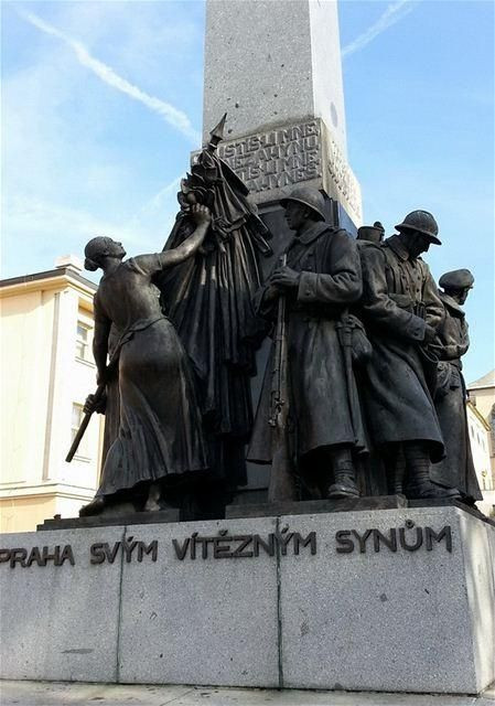 Monumentálního pomníku se dočkali i legionáři. Vytvořili ho architekt Bohumil Hübschmann a sochař Josef Mařatka v prostoru piazzetty mezi Hübschmannovými ministerskými budovami areálu pod emauzským kostelem. Nedávno obnovený památník tvoří Plečnikův zlomený obelisk, původně určený do Rajské zahrady Pražského hradu, a bronzové postavy vojáků. Komornějším dílem je socha Elišky Krásnohorské na Karlově náměstí, jejíž autorkou byla Karla Vobišová. Ta také vyhrála soutěž na hrobku sv. Vojtěcha v katedrále sv. Víta, díky různým intrikám se však tento návrh nikdy nepodařilo realizovat. Na Pohořelci stával pomník hrdiny první světové války plukovníka Josefa Jiřího Švece, který byl dílem jeho jmenovce Otakara Švece, pozdějšího autora Stalinova pomníku na Letné. Sokl navrhl jeho přítel architekt a scénograf Bedřich Feuerstein. První návrh byl ovšem architektonicky mnohem podařenější, než výsledný celkem konvenční sokl, vojákům se ale nelíbil. Plukovník ovšem na Pohořelci nestál dlouho, odstraněn byl opět za druhé světové války a po ní už nikdy nebyl obnoven. Nakonec ještě zmíním sochu primátora Jana Podlipného před libeňským zámkem, dílo Jaroslava Brůhy. Další plastiky z meziválečné éry, jako byl Jan Žižka a Josef Mánes, byly osazeny až v následujícím období a tomu se budeme věnovat zase příště.