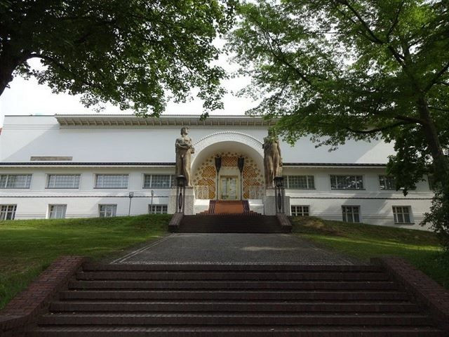 Olbrich se narodil ve slezské Opavě v německé rodině. Projevil výtvarný talent a vystudoval vídeňskou uměleckou akademii u profesora Karla von Hasenauera, jednoho z protagonistů vídeňského historismu. Poté byl zaměstnán u vůdčí osobnosti tehdejší rakouské umělecké scény a Hasenauerova nástupce na Akademii Otta Wagnera. Stal se členem vídeňské secese a v letech 1897-1898 byl dle jeho návrhu postaven na Karlově náměstí pavilon spolku, který je dodnes jednou z nejkrásnějších secesních staveb vídeňské metropole. Bílý hranol s decentní štukovou dekorací s rostlinnými a zvířecími motivy završuje kupole, tvořená pozlacenými kovovými lístky.