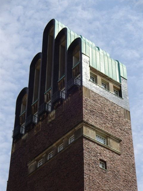 Olbrichovy pozdější stavby jsou již méně „pohádkové“, svým pojetím směřují ke stylu moderny. Novou dominantou kolonie se stává štíhlá Svatební věž, ukončená motivem, který připomíná pět prstů. Věž je obložena keramikou, horní partie má měděný plášť. K tělesu věže se přimyká další velký objekt s ateliéry umělců a výstavními sály. V kolonii přibyl ještě pozoruhodný trojdům, ukázky moderních dělnických domků a další objekty. Současně Olbrich vytváří řadu bytových interiérů, navrhuje nábytek a mnoho skvostných uměleckoprůmyslových předmětů ze stříbra, zdobených drahokamy. V této době projektuje opavský rodák také další objekty. Na Luisině náměstí v centru Darmstadtu navrhuje dvě kašny a parkovou úpravu, projektuje stavby pro zámek ve Wolfsgartenu nebo obchodní dům Tietz v Düsseldorfu. Nadaný architekt však onemocněl leukémií a v roce 1908 umírá.