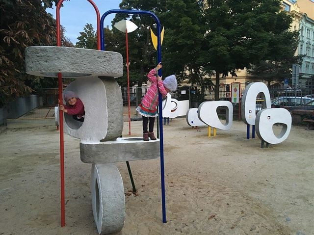 Invenční prolézačky jsem nedávno objevil v minisídlišti v Novém Městě na Moravě. „Páv“ a „drak“ naštěstí žádné nebezpečí svým řešením nepředstavují, a tak si na nich děti hrají dodnes. Podobné herní prvky ještě asi přežily na některých pražských sídlištích, ale většinou se o ně nikdo nestará, a tak jsou jejich dny sečteny. Leckdy jde přitom o díla známých umělců, která reprezentují výtvarnou tvorbu určité epochy. Je to škoda, asi by stálo za to věnovat jim podobnou pozornost jako těm, které navrhli Zoubek s Kmentovou v pražském Bubenči. Mimochodem, téma je to dnes ve světě opět aktuální, jak o tom svědčí i nedávná velká expozice věnovaná tvorbě pro děti a pořádaná Muzeem moderního umění v New Yorku. Dokumentace některých českých hřišť v nich hrála významnou roli.