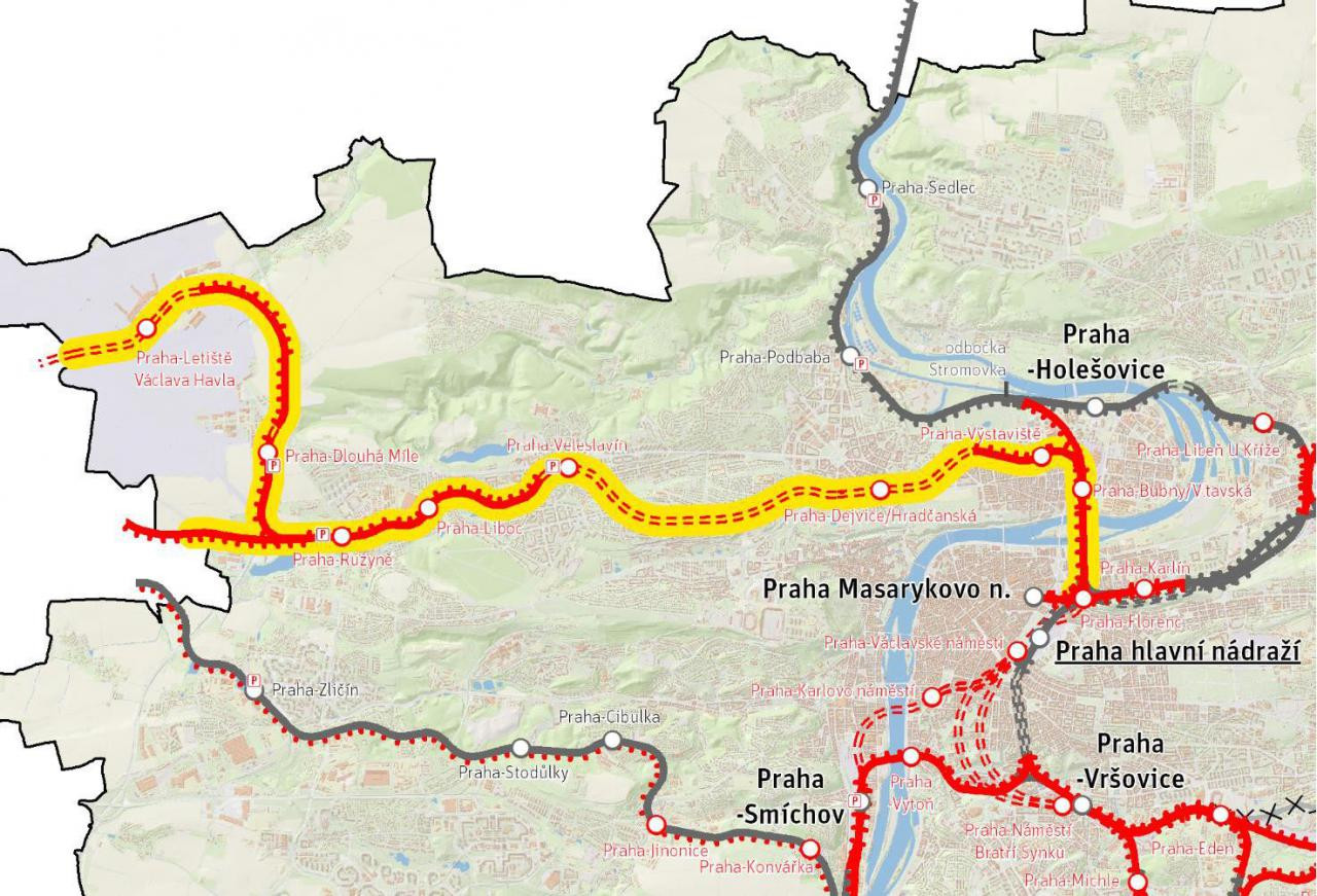 Výstavba železniční trati na letiště byla zahájena v polovině minulého roku rekonstrukcí Negrelliho viaduktu. Zprovoznění celé modernizované tratě z Prahy na Letiště Václava Havla a do Kladna je předpokládáno do roku 2030.