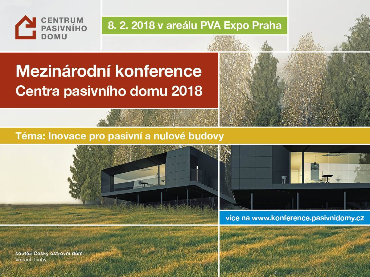 13. ročník Mezinárodní konference Centra pasivního domu 2018 nese podtitul INOVACE PRO NULOVÉ BUDOVY. Konference se uskuteční v rámci veletrhu FOR PASIV 2018 ve čtvrtek 8. února 2018 v kongresovém sálu areálu PVA EXPO Praha v Letňanech. Cílem konference je přinést informace o nových a připravovaných inovativních postupech, řešeních, výrobcích a materiálech a jejich použití v budovách s téměř nulovou spotřebou energie a energeticky soběstačné zástavbě.
