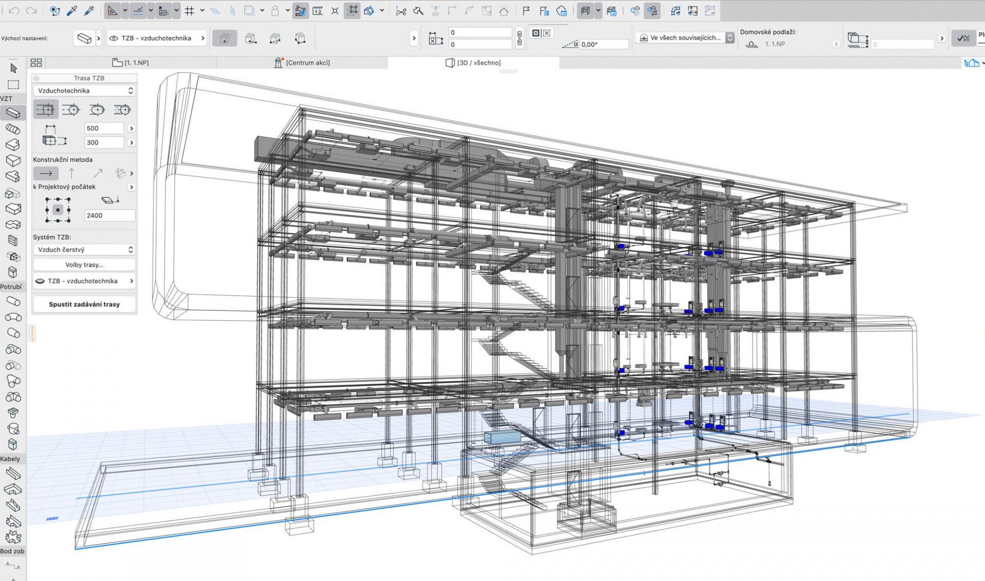TZB modelář se stal standardní součástí Archicadu a dělá z něj prostředí, kde lze modelovat technické rozvody. V rámci nové verze rovněž došlo k vylepšení importu TZB rozvodů ve formátu IFC. V případě, že schéma rozvodů je k dispozici pouze jako 2D DWG výkres, lze tento načít a použít pro „roztrasování“ 3D modelu. Nástroj Prostup (novinka Archicadu 23) automaticky vytváří „společnou cestu“ blízko umístěným rozvodům. Sám TZB modelář byl doplněn trubkami předdefinovaných rozměrů, viditelnou paletou trasování a bylo vylepšeno napojování prvků.
