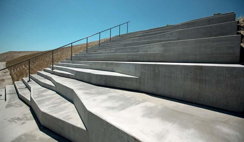 Tři přístupové body od parkoviště k rekreační pláži v rotterdamském přístavu Maasvlakte 2 mají nyní betonové schody, které navrhl Jan Konings. Rotter damský architekt přišel s myšlenkou 9 m širokého schodiště s různým členěním, s odlišnými výškami schodů, které tak mají různou funkci a vzhledem ke své minimalistické, ale hravé formě, velmi dobře zapadají do celkového vzhledu vysoké duny oddělující pobřeží od moře.