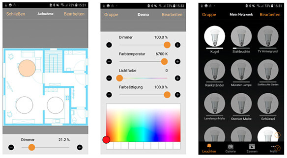 Aplikace Casambi nabízí široké možnosti ovládání mobilním telefonem, včetně: