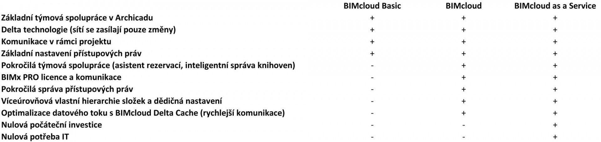 Z pohledu technicko-licenčního je BIMcloud dostupný ve třech variantách. BIMcloud Basic je k dispozici zdarma a je součástí instalace Archicadu. Aplikace zabezpečuje týmovou spolupráci mezi projektanty pracujícími s Archicadem. BIMcloud a BIMcloud as a Service reprezentují onen multidisciplinární hub. Oba systémy jsou zpoplatněny. BIMcloud vyžaduje instalaci na vlastním hardware, BIMcloud as a Service je cloudová služba poskytovaná Graphisoftem.