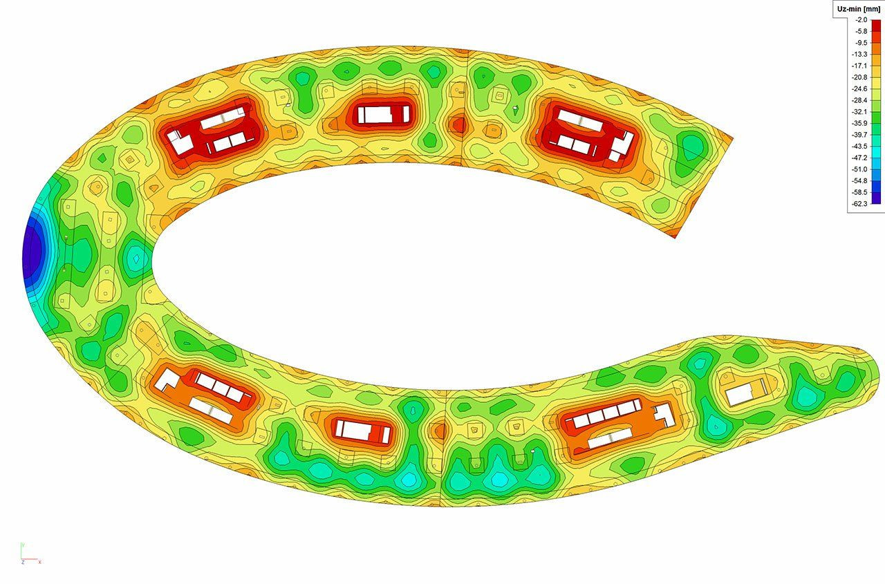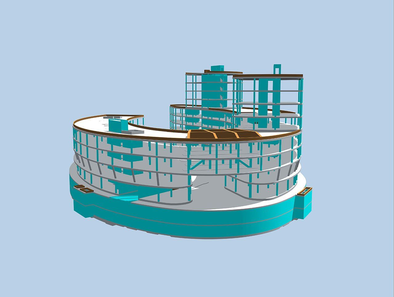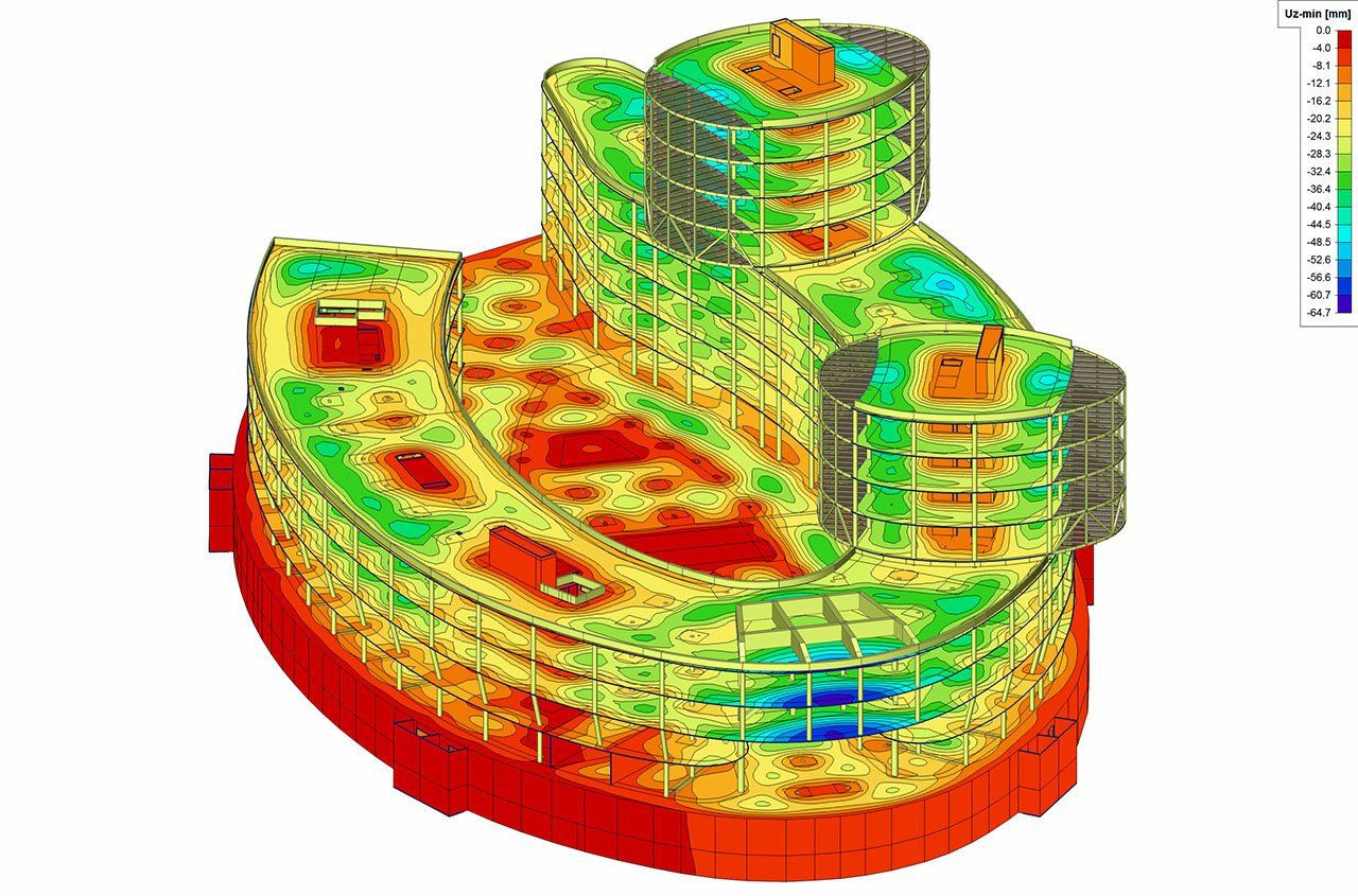 V rámci proječního týmu byly využívány celkem tři modely konstrukce – jeden pro architekta, stavaře a profese, druhý pro výkresy tvaru konstrukce a třetí pak čistě výpočtový pro účely statika. Tyto modely byly generovány v průběhu prací z jednoho základního modelu. Projekt byl tedy z hlediska geometrického tvaru a výpočetního modelu včetně dalších informací zpracován ve 3D, návazné výkresy výztuže, stavební detaily apod. pak převážně ve 2D.