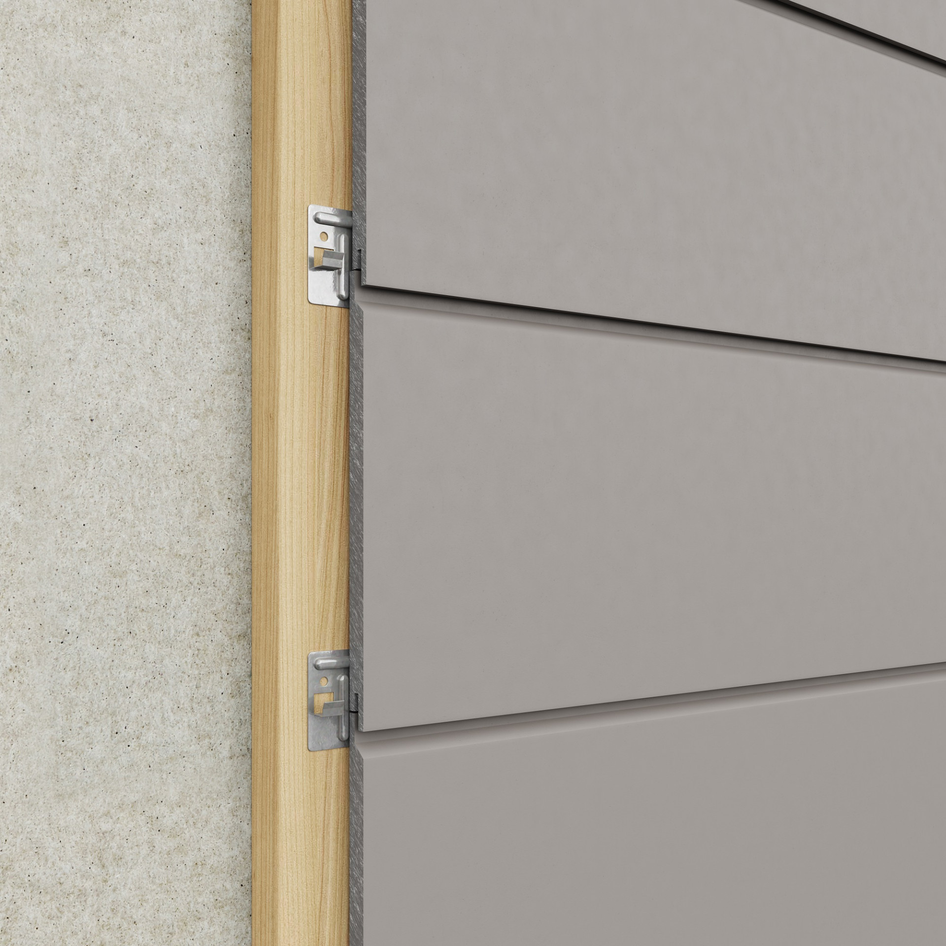 Hlavním rysem tohoto nového produktu je povrchová úprava pero a drážka, která dává vaší fasádě moderní design bez viditelných upevňovacích materiálů, jako jsou šrouby nebo hřebíky. Inovativní řešení sestává ze silné spony, která „spojuje“ dvě prkna, drží je pohromadě pomocí stabilního uchopení a umožňuje volný pohyb prken, protože žádný šroub nezasahuje přímo do prkna. To usnadnilo instalaci prkna – horizontálně i vertikálně:
