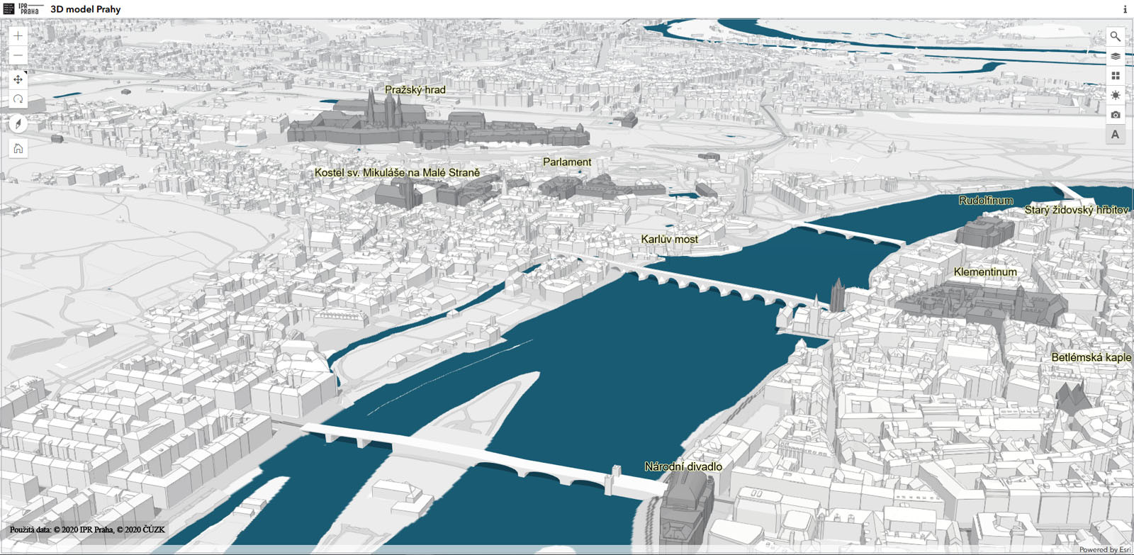 Rozhraní 3D modelu Prahy je k dispozici přes webový prohlížeč