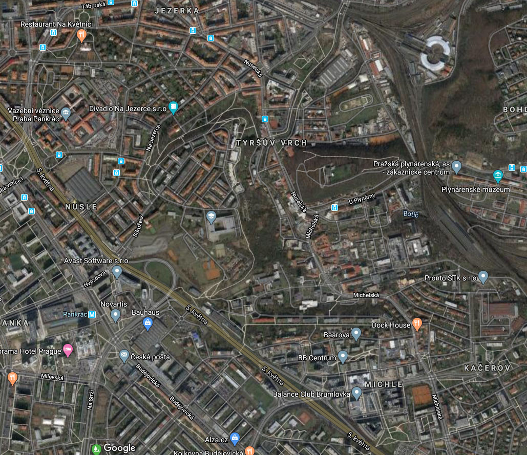 Výřez z ortofotomapy odpovídající rozsahu mapového listu Praha 6-3