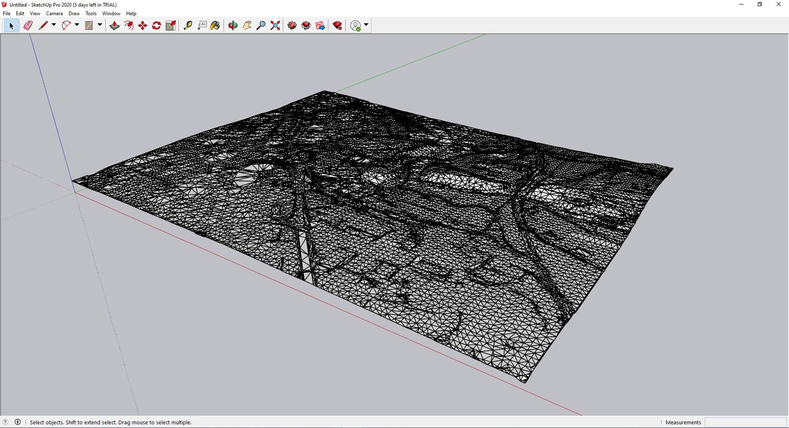 DWG terénu mapového listu po importu do programu SketchUp