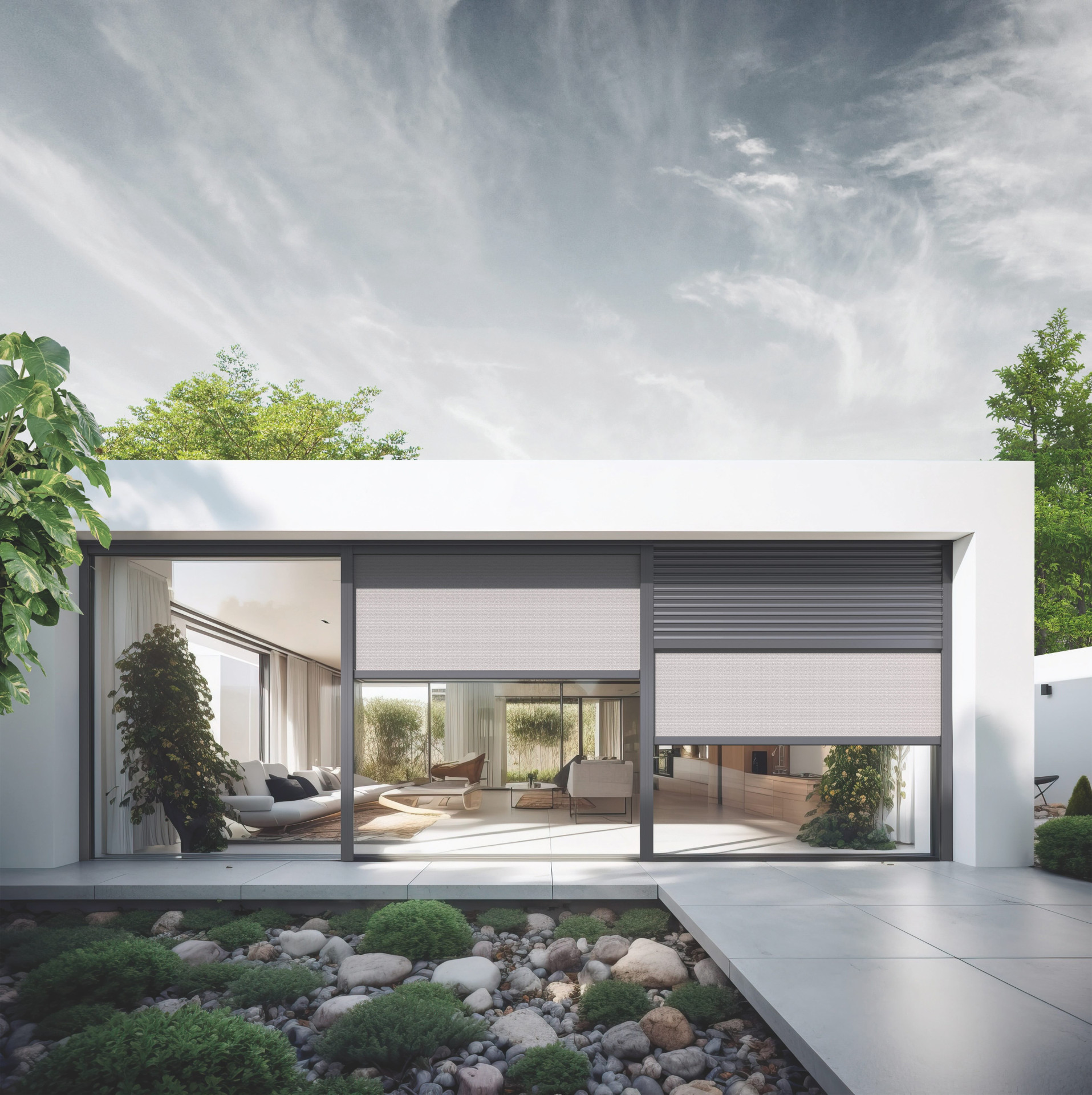 Díky vybavení rolety samostatně fungujícím systém screenů SkyRoll ZIP je možné chránit místnosti před intenzivním slunečním zářením a zároveň zachovat volný výhled ven. Kromě toho lze tento výrobek použít také jako síť proti hmyzu, která účinně chrání místnosti. Systém SkyTwin je k dispozici také se screenem ve verzi Classic.