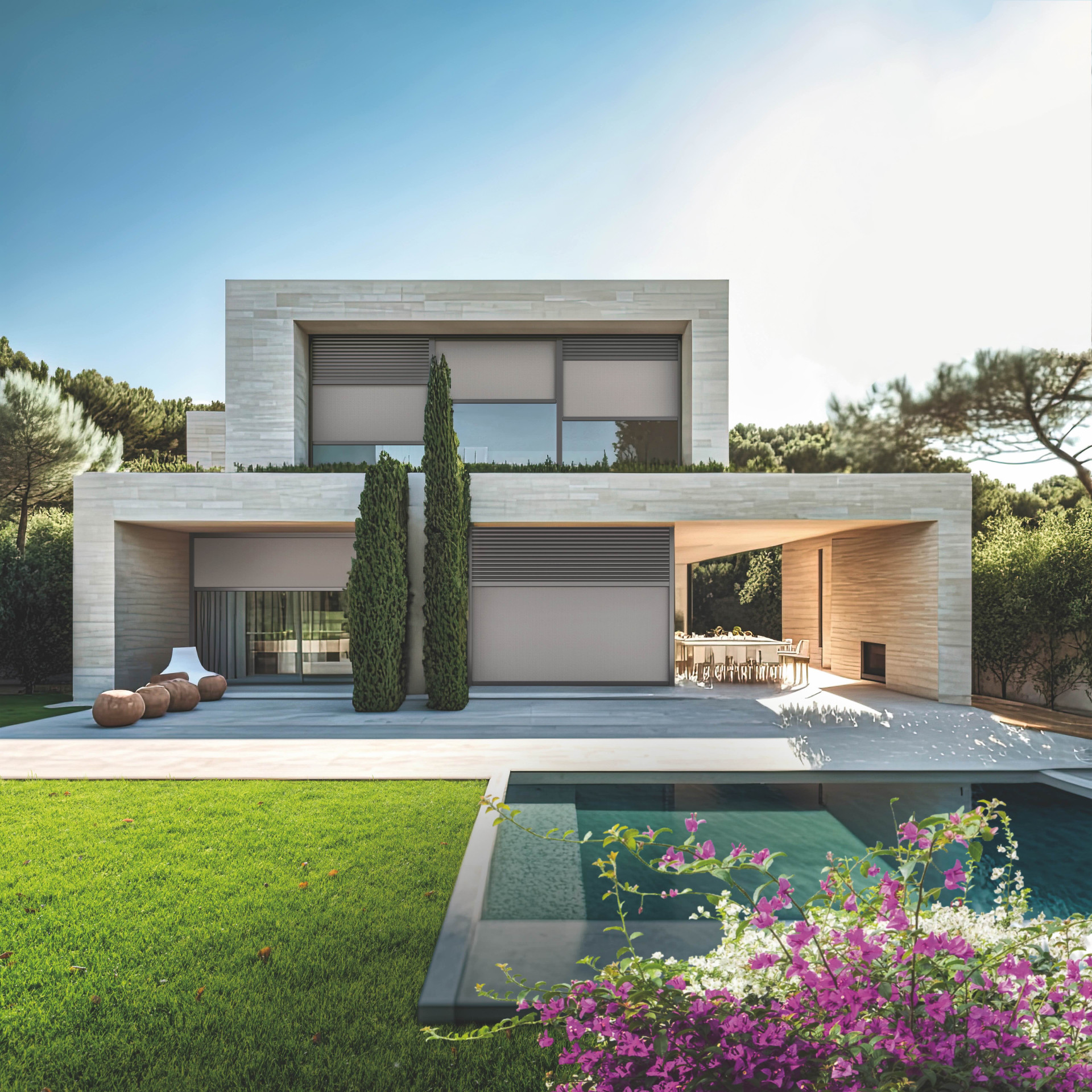 Konstrukce rolety nezasahuje do konstrukce okna ani nadpraží, a neovlivňuje tak energetickou bilanci budovy. Rolety SkyTwin dokonale splývají s fasádou a tvoří její nedílnou součást. Čelní strana roletového boxu SkyTwin zároveň tvoří podklad pro jakýkoli povrchový materiál (např. omítku), díky čemuž se box stává nenápadným prvkem fasády budovy.