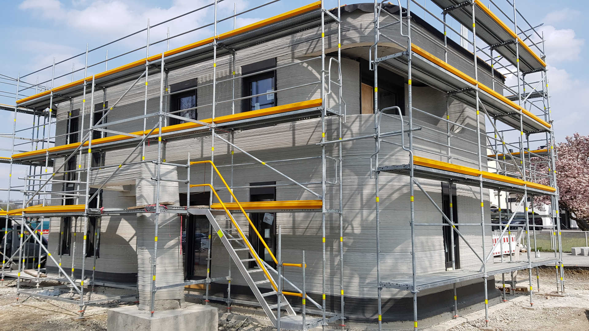 Prvotní vize se stala skutečností, když v roce 2020 vznikl dvoupatrový rodinný dům ve městě Beckum v severní části Severního Porýní-Vestfálska v Německu. Šlo o zcela první stavbu v Německu vytvořenou pomocí 3D tisku z betonu. Dvoupatrový dům nabízí přibližně 160 metrů čtverečních obytného prostoru. Budova se skládá z trojitých stěn, dutiny jsou naplněné izolační hmotou. Domu dala vzniknout 3D tiskárna na beton, která byla nainstalována přímo na místě stavby. Tiskárna dokáže tisknout rychlostí až 1 m/s a dvouplášťovou stěnu o obvodu 1 m² vytvoří přibližně za pět minut. V případě tohoto domu bylo zvoleno pomalejší tempo – přeci jen šlo o pilotní stavbu.