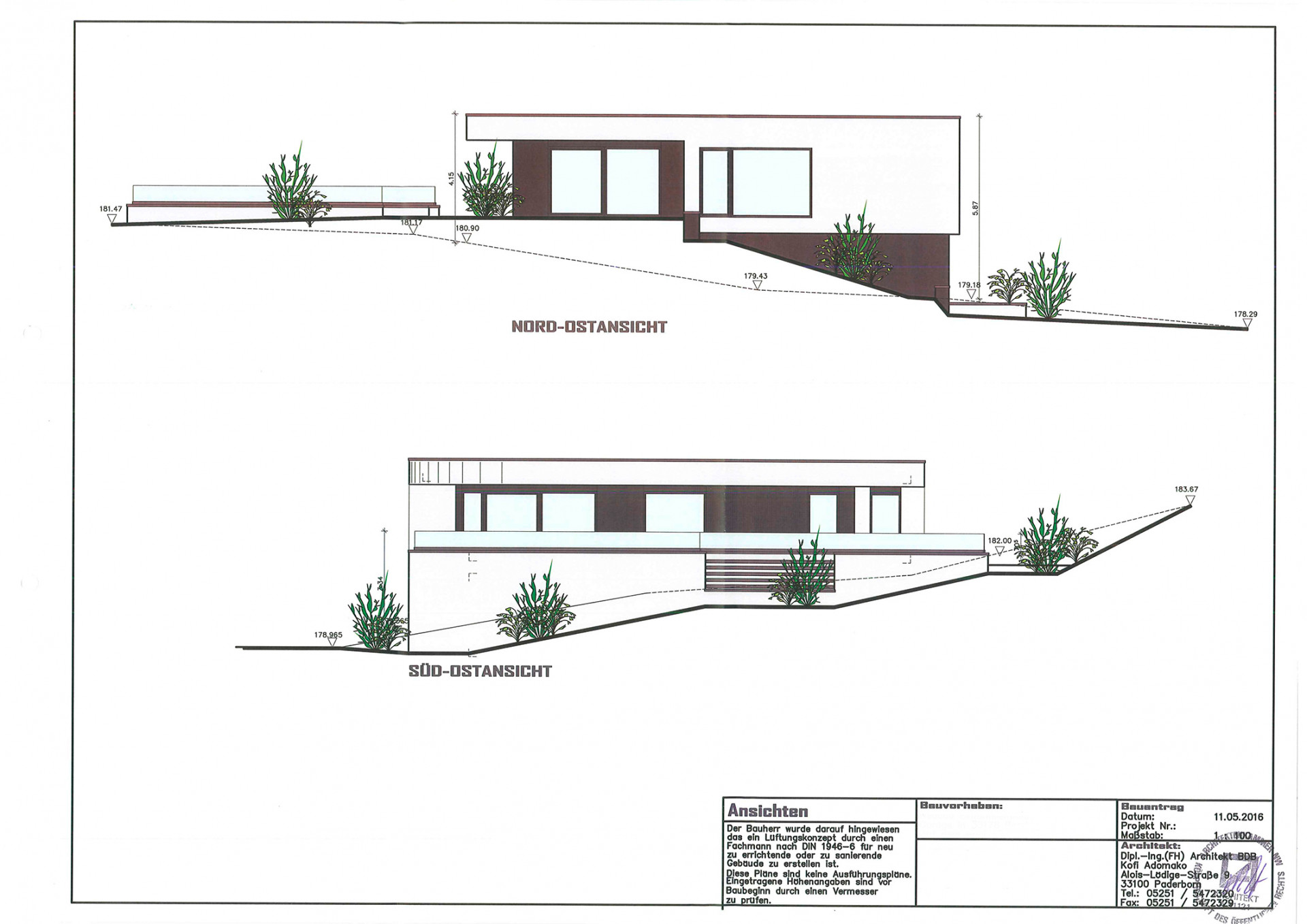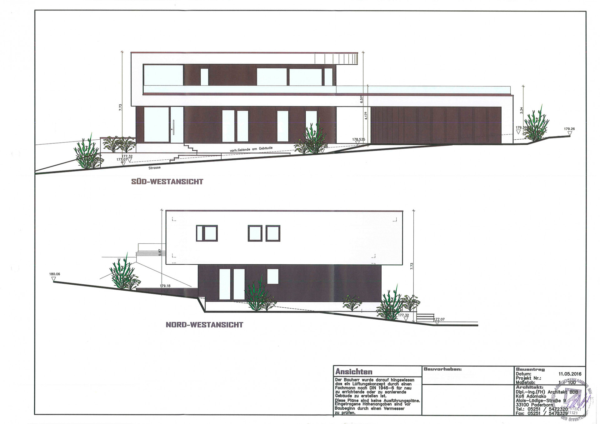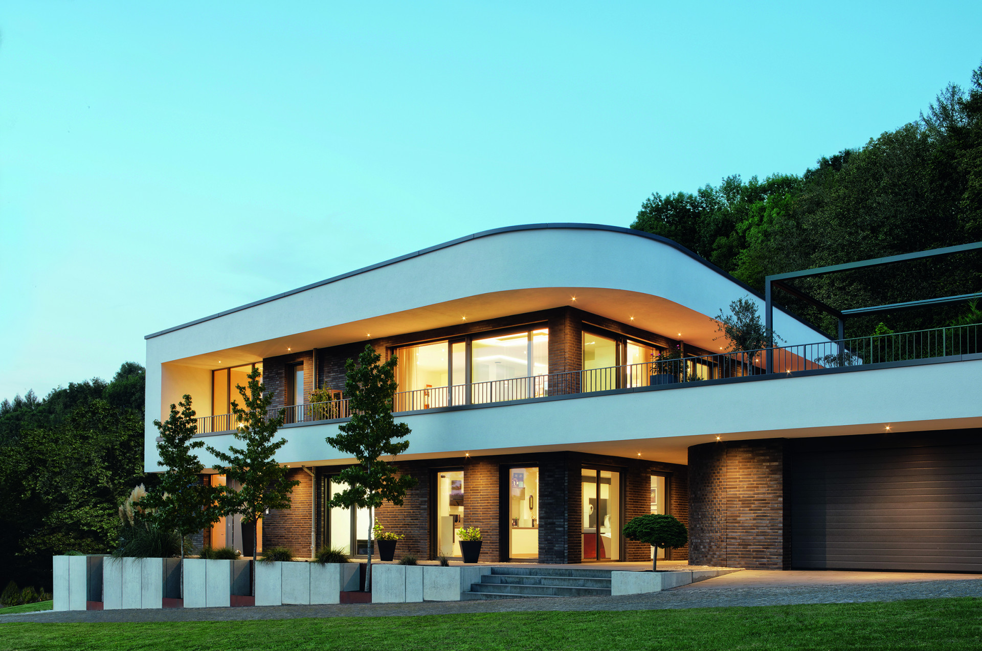 Nemovitost se nachází na svažitém pozemku klínovitého tvaru a má poměrně nestandardní topografickou polohu. Cílem návrhu kanceláře Adomako Architekten bylo vytvořit dvoupodlažní dům, který by harmonicky souzněl s krajinou a zároveň vytvořil zajímavý, ale decentní akcent v rámci okolí - to vše s ohledem na místní stavební předpisy. Výsledkem je stavba, která svou střešní terasou navazuje na vrchol svahu a uzavírá rezidenční hmotu objektu. I do stavební konstrukce se promítá filozofie architekta spočívající ve vytváření živé souhry mezi krytými a nekrytými prostory.