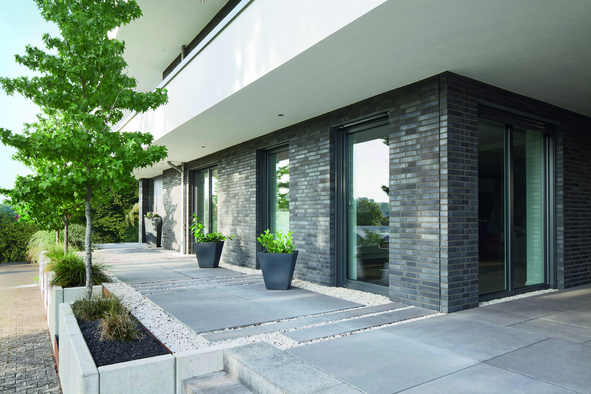 Podstatou architektonického návrhu rodinného domu v německém okrese Paderborn jsou kontrasty − mezi otevřenými a uzavřenými prostory, hladkými a strukturovanými povrchy, světlými a tmavými materiály. Sjednocujícím prvkem umožňujícím dosáhnout kompaktního vzhledu fasády jsou pak velkoryse prosklené plochy oken a posuvů Schüco s metalickými povrchy plastových profilů.